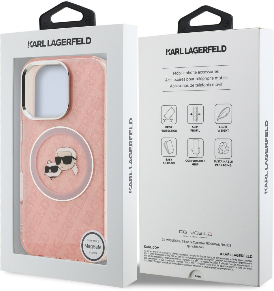 Karl Lagerfeld IML K&CH Heads Repeated Logo MagSafe zadný kryt je dokonalý doplnok pre váš telefón aj outfit, ktorý kombinuje funkčnosť a štýl v jednom. Tento kryt je vyrobený z kombinácie pevného PC plastu na zadnej strane a TPU mäkkého plastu na bokoch, čo vytvára dokonalú symbiózu odolnosti a pohodlia. Jeho pružný a mäkký materiál sa prispôsobí tvaru vášho telefónu a umožňuje ľahký prístup ku všetkým tlačidlám a konektorom, zatiaľ čo textúra krytu zaistí, že sa skvele drží v ruke a nešmýka sa. Tento kryt podporuje technológiu MagSafe, čo znamená, že je kompatibilný s bezdrôtovým nabíjaním a ďalšími MagSafe doplnkami. Elegantné trblietky vo vnútri materiálu a ikonické logo Karl Lagerfeld ponúka nielen štýlový, ale aj luxusný vzhľad. Oživte svoj outfit týmto módnym doplnkom, ktorý podčiarkne váš jedinečný štýl. Stavte na kvalitu, originalitu a dokonalú ochranu pre váš telefón s prémiovým krytom Karl Lagerfeld.Kľúčové vlastnosti