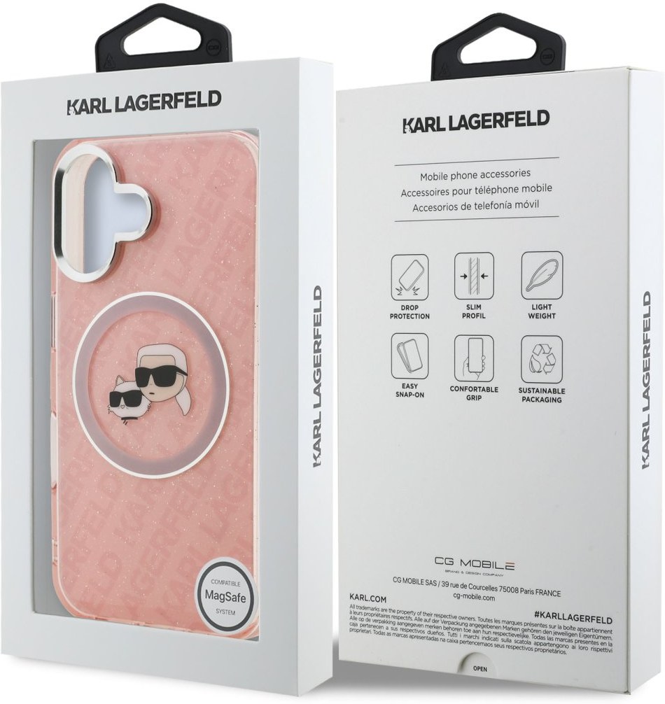 Karl Lagerfeld IML K&CH Heads Repeated Logo MagSafe kryt pre iPhone 16, ružový