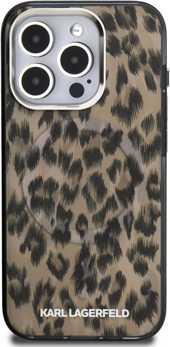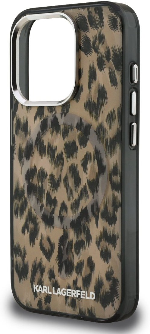 Karl Lagerfeld IML Leopard MagSafe kryt pre iPhone 15 Pro, hnedý