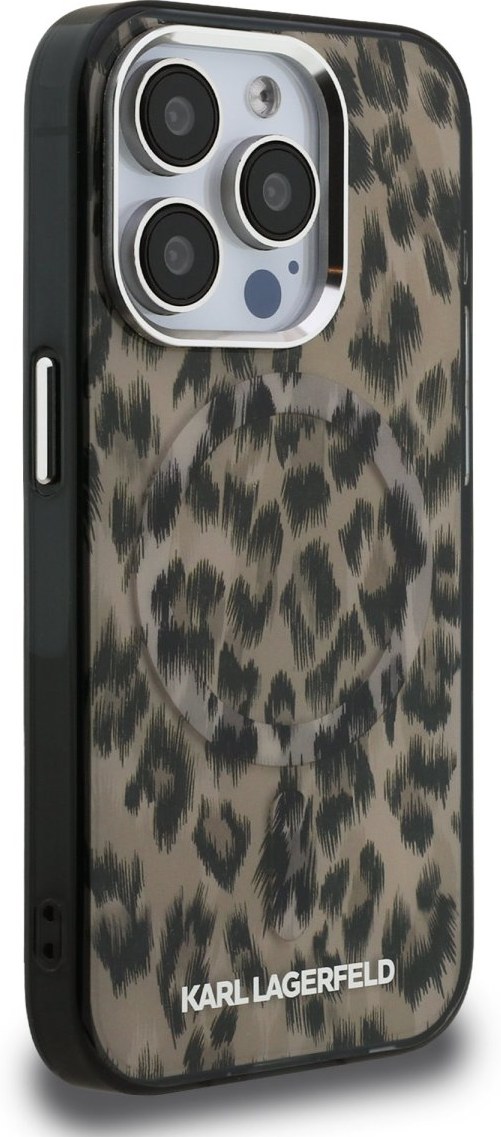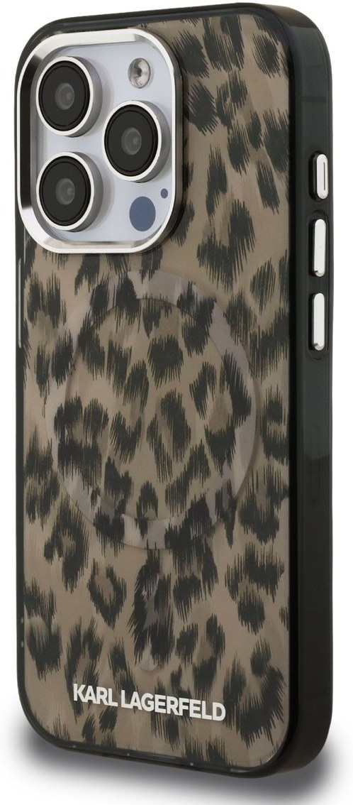 Karl Lagerfeld IML Leopard MagSafe kryt pre iPhone 15 Pro Max, hnedý