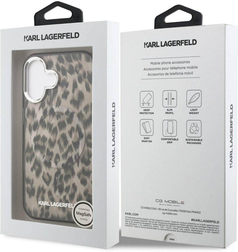 Karl Lagerfeld IML Leopard MagSafe zadný kryt je dokonalý doplnok pre váš telefón aj outfit, ktorý kombinuje funkčnosť a štýl v jednom. Tento kryt je vyrobený z kombinácie pevného PC plastu na zadnej strane a TPU mäkkého plastu na bokoch, čo vytvára dokonalú symbiózu odolnosti a pohodlia. Jeho pružný a mäkký materiál sa prispôsobí tvaru vášho telefónu a umožňuje ľahký prístup ku všetkým tlačidlám a konektorom, zatiaľ čo textúra krytu zaistí, že sa skvele drží v ruke a nešmýka sa. Tento kryt podporuje technológiu MagSafe, čo znamená, že je kompatibilný s bezdrôtovým nabíjaním a ďalšími MagSafe doplnkami. Zaujmite výrazným a odvážnym leopardím vzorom, ktorý okamžite priťahuje pozornosť. Kombinácia hnedých a čiernych tónov evokuje divoký a moderný štýl. Stavte na kvalitu, originalitu a dokonalú ochranu pre váš telefón s prémiovým krytom Karl Lagerfeld.Kľúčové vlastnosti