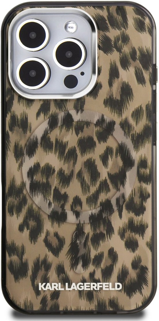 Karl Lagerfeld IML Leopard MagSafe kryt pre iPhone 16 Pro, hnedý