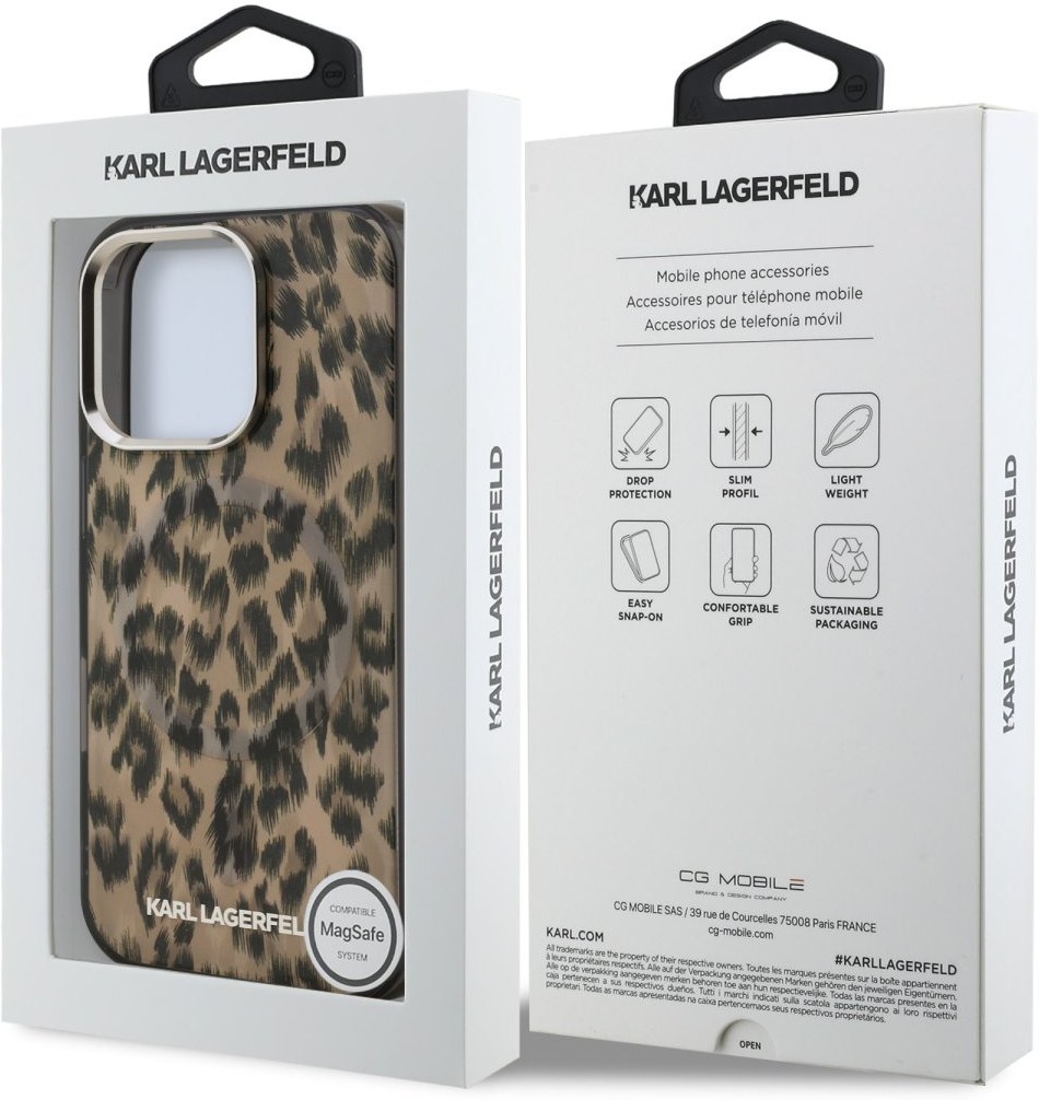 Karl Lagerfeld IML Leopard MagSafe zadný kryt je dokonalý doplnok pre váš telefón aj outfit, ktorý kombinuje funkčnosť a štýl v jednom. Tento kryt je vyrobený z kombinácie pevného PC plastu na zadnej strane a TPU mäkkého plastu na bokoch, čo vytvára dokonalú symbiózu odolnosti a pohodlia. Jeho pružný a mäkký materiál sa prispôsobí tvaru vášho telefónu a umožňuje ľahký prístup ku všetkým tlačidlám a konektorom, zatiaľ čo textúra krytu zaistí, že sa skvele drží v ruke a nešmýka sa. Tento kryt podporuje technológiu MagSafe, čo znamená, že je kompatibilný s bezdrôtovým nabíjaním a ďalšími MagSafe doplnkami. Zaujmite výrazným a odvážnym leopardím vzorom, ktorý okamžite priťahuje pozornosť. Kombinácia hnedých a čiernych tónov evokuje divoký a moderný štýl. Stavte na kvalitu, originalitu a dokonalú ochranu pre váš telefón s prémiovým krytom Karl Lagerfeld.Kľúčové vlastnosti