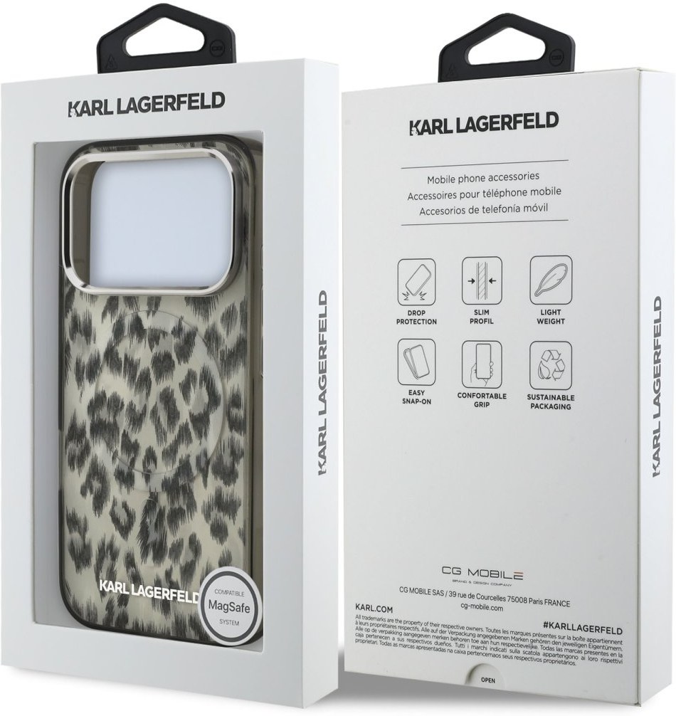 Karl Lagerfeld IML Leopard MagSafe zadný kryt je dokonalý doplnok pre váš telefón aj outfit, ktorý kombinuje funkčnosť a štýl v jednom. Tento kryt je vyrobený z kombinácie pevného PC plastu na zadnej strane a TPU mäkkého plastu na bokoch, čo vytvára dokonalú symbiózu odolnosti a pohodlia. Jeho pružný a mäkký materiál sa prispôsobí tvaru vášho telefónu a umožňuje ľahký prístup ku všetkým tlačidlám a konektorom, zatiaľ čo textúra krytu zaistí, že sa skvele drží v ruke a nešmýka sa. Tento kryt podporuje technológiu MagSafe, čo znamená, že je kompatibilný s bezdrôtovým nabíjaním a ďalšími MagSafe doplnkami. Zaujmite výrazným a odvážnym leopardím vzorom, ktorý okamžite priťahuje pozornosť. Kombinácia hnedých a čiernych tónov evokuje divoký a moderný štýl. Stavte na kvalitu, originalitu a dokonalú ochranu pre váš telefón s prémiovým krytom Karl Lagerfeld.Kľúčové vlastnosti