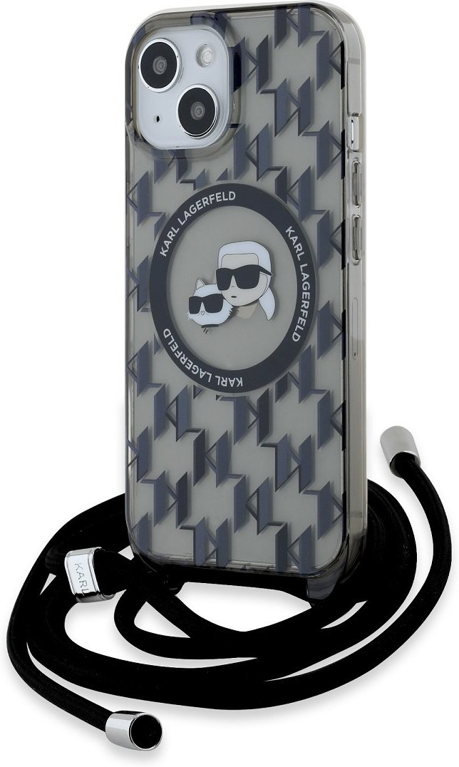 Karl Lagerfeld IML Monogram Crossbody K&CH Heads MagSafe kryt pre iPhone 15, čierny
