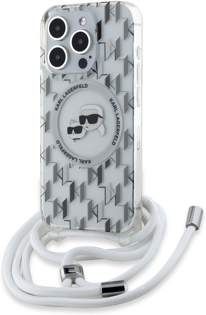Karl Lagerfeld IML Monogram Crossbody K&CH Heads MagSafe kryt pre iPhone 15 Pro Max, transparentný