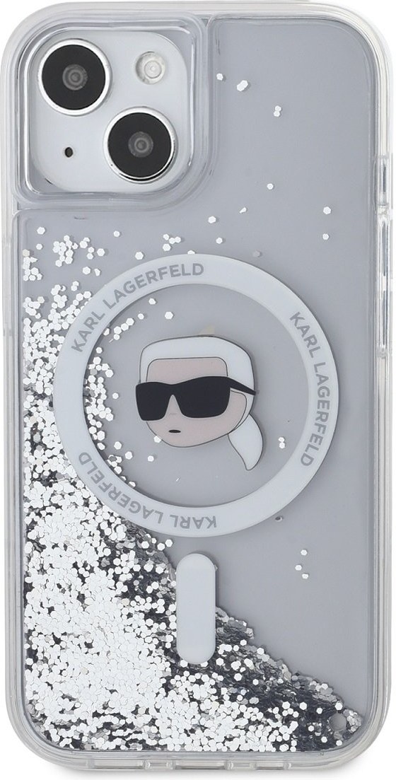 Karl Lagerfeld Liquid Glitter Karl Head Magsafe kryt pre iPhone 15, transparentný