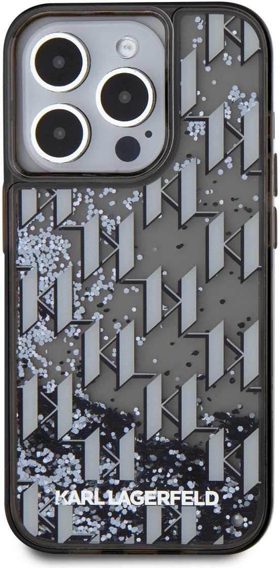 Karl Lagerfeld Liquid Glitter Monogram Gradient kryt pre iPhone 15 Pro, čierny