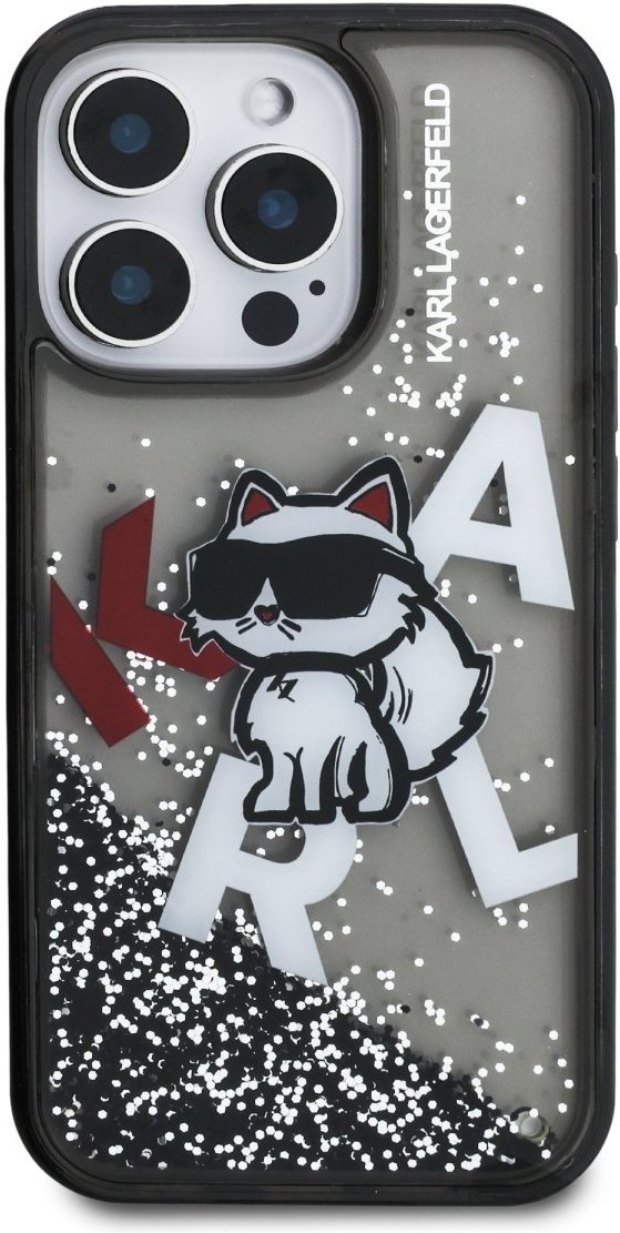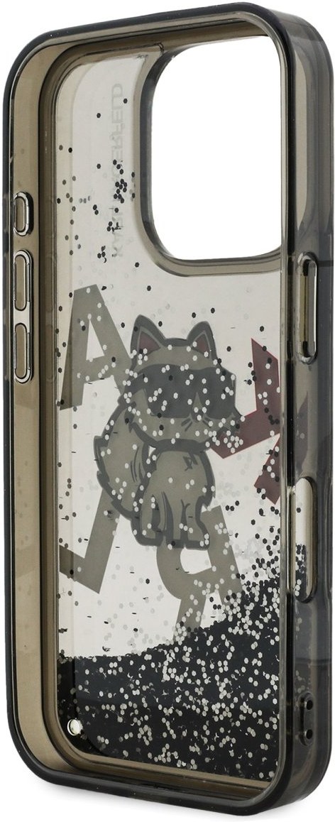 Karl Lagerfeld Liquid Glitter Scattered Choupette kryt pre iPhone 16 Pro Max, čierny