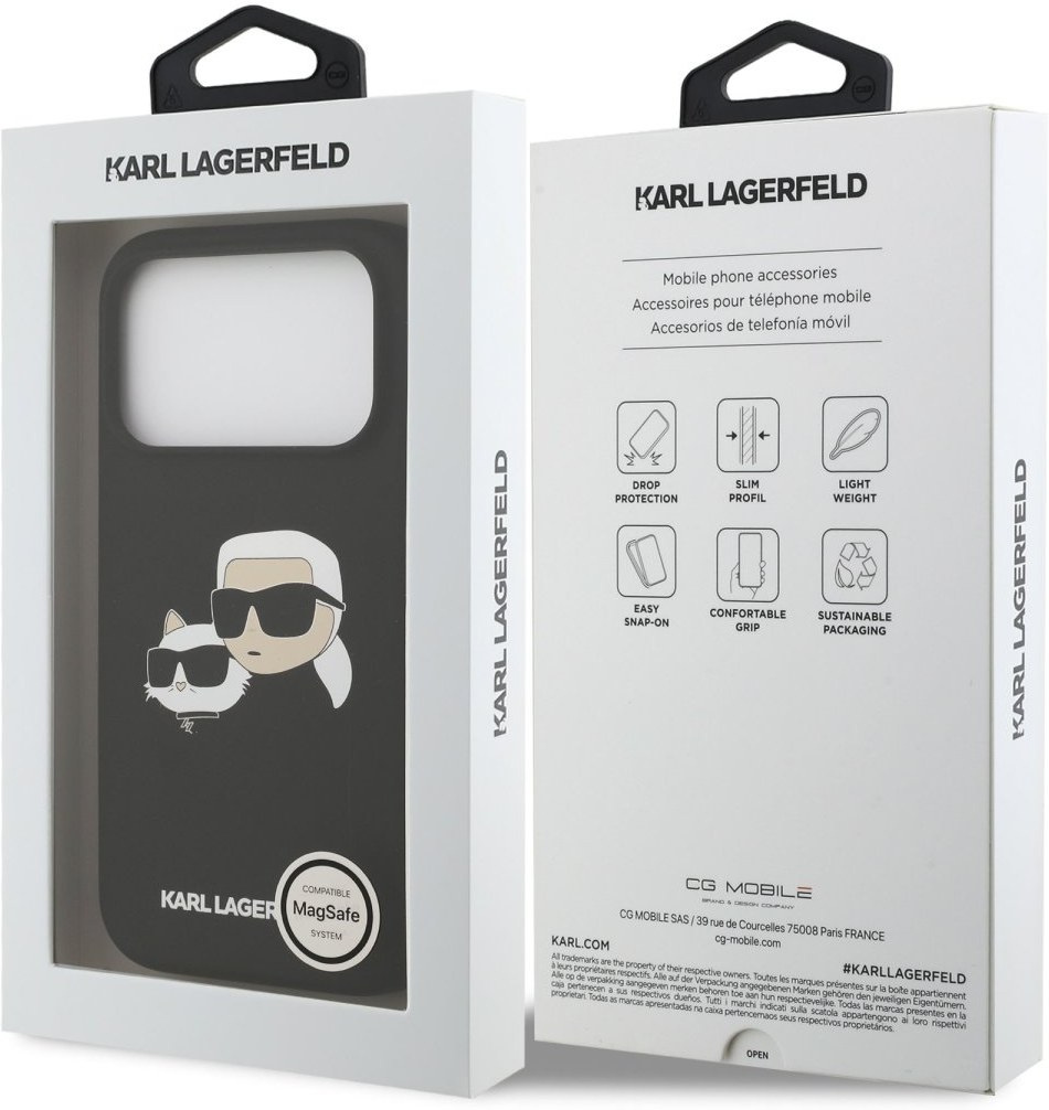 Karl Lagerfeld Liquid Silicone Double Heads zadný kryt na telefón je skvelým doplnkom pre všetkých milovníkov štýlu a praktickosti. Kryt je vyrobený z ľahkého a odolného prémiového silikónu, ktorý nielen že dobre chráni váš telefón pred prachom a poškriabaním, ale tiež sa pohodlne drží v ruke a nešmýka sa. Na vnútornej strane krytu je výstelka z jemného mikrovlákna. Vďaka presnému tvaru perfektne sedí na telefóne a umožňuje ľahký prístup ku všetkým tlačidlám a konektorom. Tento kryt podporuje technológiu MagSafe, čo znamená, že je kompatibilný s bezdrôtovým nabíjaním a ďalšími MagSafe doplnkami. Dizajn krytu nesie ikonické vyobrazenie Karla Lagerfelda a jeho mačky Choupette, čo z neho robí nielen praktický, ale aj štýlový doplnok, ktorý skvele doplní váš outfit. Pokiaľ hľadáte kryt, ktorý kombinuje eleganciu a funkčnosť, je tento kúsok od Karla Lagerfelda tou pravou voľbou pre vás.Kľúčové vlastnosti