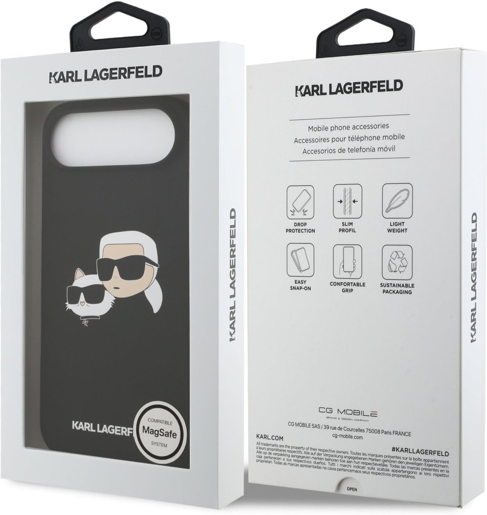 Karl Lagerfeld Liquid Silicone Double Heads zadný kryt na telefón je skvelým doplnkom pre všetkých milovníkov štýlu a praktickosti. Kryt je vyrobený z ľahkého a odolného prémiového silikónu, ktorý nielen že dobre chráni váš telefón pred prachom a poškriabaním, ale tiež sa pohodlne drží v ruke a nešmýka sa. Na vnútornej strane krytu je výstelka z jemného mikrovlákna. Vďaka presnému tvaru perfektne sedí na telefóne a umožňuje ľahký prístup ku všetkým tlačidlám a konektorom. Tento kryt podporuje technológiu MagSafe, čo znamená, že je kompatibilný s bezdrôtovým nabíjaním a ďalšími MagSafe doplnkami. Dizajn krytu nesie ikonické vyobrazenie Karla Lagerfelda a jeho mačky Choupette, čo z neho robí nielen praktický, ale aj štýlový doplnok, ktorý skvele doplní váš outfit. Pokiaľ hľadáte kryt, ktorý kombinuje eleganciu a funkčnosť, je tento kúsok od Karla Lagerfelda tou pravou voľbou pre vás.Kľúčové vlastnosti