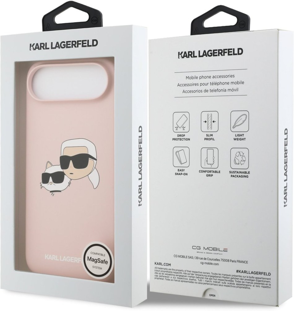 Karl Lagerfeld Liquid Silicone Double Heads zadný kryt na telefón je skvelým doplnkom pre všetkých milovníkov štýlu a praktickosti. Kryt je vyrobený z ľahkého a odolného prémiového silikónu, ktorý nielen že dobre chráni váš telefón pred prachom a poškriabaním, ale tiež sa pohodlne drží v ruke a nešmýka sa. Na vnútornej strane krytu je výstelka z jemného mikrovlákna. Vďaka presnému tvaru perfektne sedí na telefóne a umožňuje ľahký prístup ku všetkým tlačidlám a konektorom. Tento kryt podporuje technológiu MagSafe, čo znamená, že je kompatibilný s bezdrôtovým nabíjaním a ďalšími MagSafe doplnkami. Dizajn krytu nesie ikonické vyobrazenie Karla Lagerfelda a jeho mačky Choupette, čo z neho robí nielen praktický, ale aj štýlový doplnok, ktorý skvele doplní váš outfit. Pokiaľ hľadáte kryt, ktorý kombinuje eleganciu a funkčnosť, je tento kúsok od Karla Lagerfelda tou pravou voľbou pre vás.Kľúčové vlastnosti
