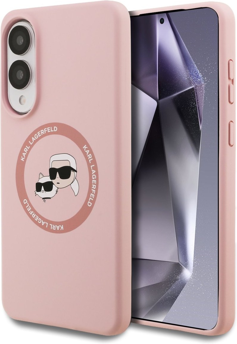 Karl Lagerfeld Liquid Silicone Double Heads MagSafe kryt pre Samsung Galaxy S25 Edge, ružový