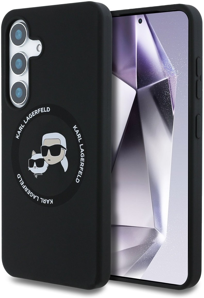 Karl Lagerfeld Liquid Silicone K&CH Heads MagSafe kryt pre Samsung Galaxy S25+, čierny