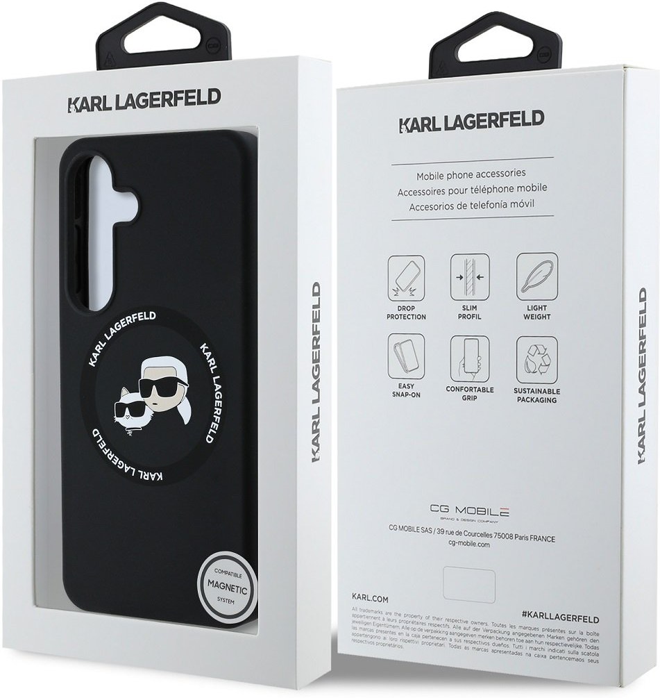 Karl Lagerfeld Liquid Silicone Karl and Choupette zadný kryt na telefón je skvelým doplnkom pre všetkých milovníkov štýlu a praktickosti. Kryt je vyrobený z ľahkého a odolného prémiového silikónu, ktorý nielen že dobre chráni váš telefón pred prachom a poškriabaním, ale tiež sa pohodlne drží v ruke a nešmýka sa na vnútornej strane krytu je výstelka z jemného mikrovlákna. Vďaka presnému tvaru perfektne sedí na telefóne a umožňuje ľahký prístup ku všetkým tlačidlám a konektorom. Tento kryt podporuje technológiu MagSafe, čo znamená, že je kompatibilný s bezdrôtovým nabíjaním a ďalšími MagSafe doplnkami. Dizajn krytu nesie ikonické vyobrazenie Karla Lagerfelda a jeho mačky Choupette, čo z neho robí nielen praktický, ale aj štýlový doplnok, ktorý skvele doplní váš outfit. Pokiaľ hľadáte kryt, ktorý kombinuje eleganciu a funkčnosť, je tento kúsok od Karla Lagerfelda tou pravou voľbou pre vás.Kľúčové vlastnosti