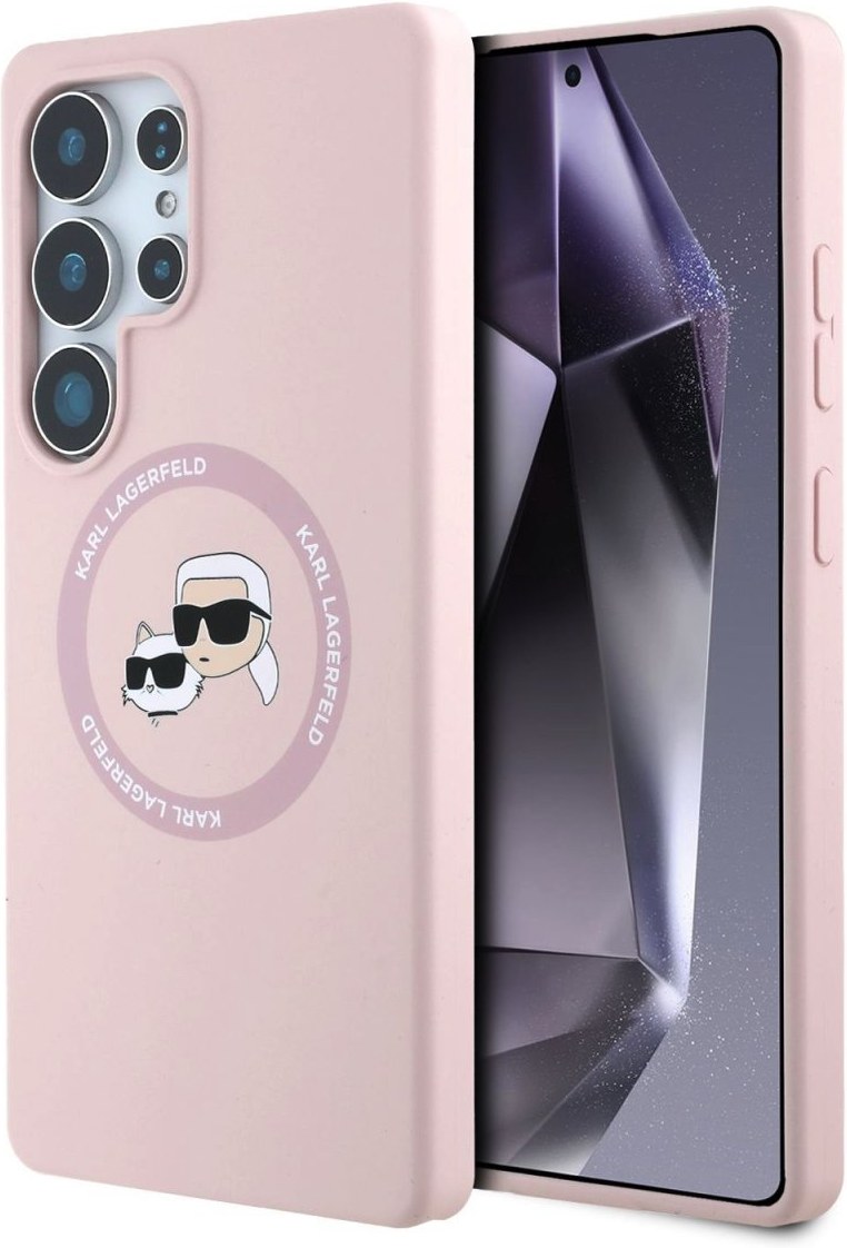 Karl Lagerfeld Liquid Silicone K&CH Heads MagSafe kryt pre Samsung Galaxy S25 Ultra, ružový