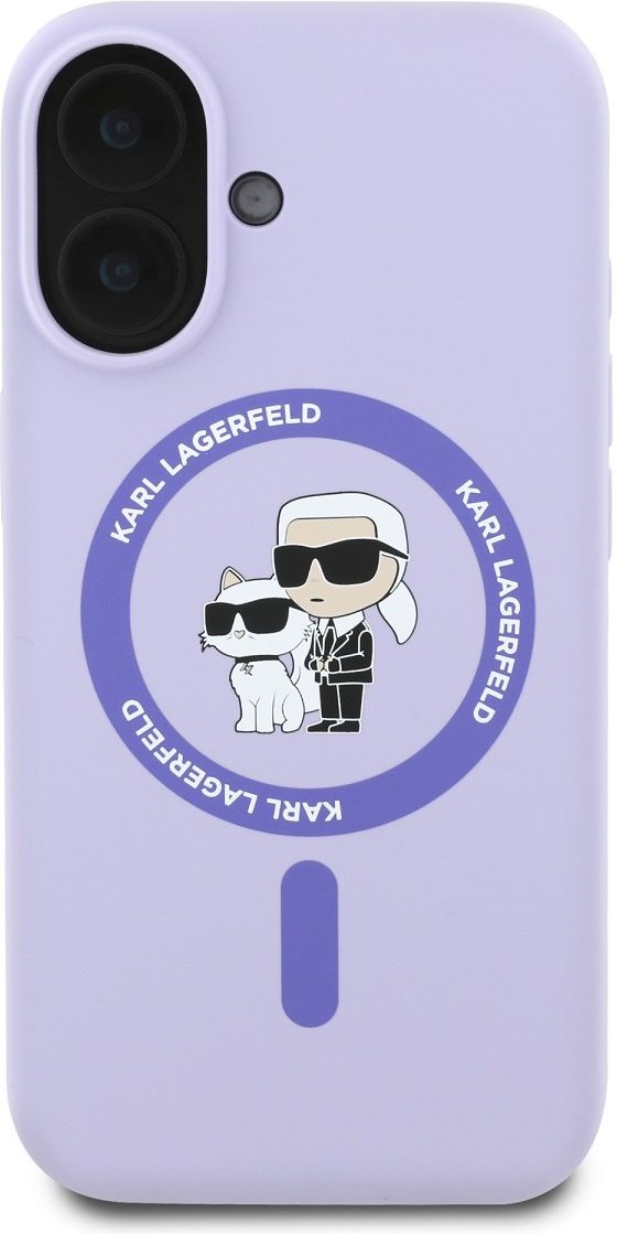 Karl Lagerfeld Liquid Silicone Karl and Choupette MagSafe kryt pre iPhone 16, fialový