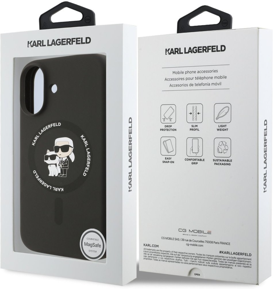 Karl Lagerfeld Liquid Silicone Karl and Choupette zadný kryt na telefón je skvelým doplnkom pre všetkých milovníkov štýlu a praktickosti. Kryt je vyrobený z ľahkého a odolného prémiového silikónu, ktorý nielen že dobre chráni váš telefón pred prachom a poškriabaním, ale tiež sa pohodlne drží v ruke a nešmýka sa. Na vnútornej strane krytu je výstelka z jemného mikrovlákna. Vďaka presnému tvaru perfektne sedí na telefóne a umožňuje ľahký prístup ku všetkým tlačidlám a konektorom. Tento kryt podporuje technológiu MagSafe, čo znamená, že je kompatibilný s bezdrôtovým nabíjaním a ďalšími MagSafe doplnkami. Dizajn krytu nesie ikonické vyobrazenie Karla Lagerfelda a jeho mačky Choupette, čo z neho robí nielen praktický, ale aj štýlový doplnok, ktorý skvele doplní váš outfit. Pokiaľ hľadáte kryt, ktorý kombinuje eleganciu a funkčnosť, je tento kúsok od Karla Lagerfelda tou pravou voľbou pre vás.Kľúčové vlastnosti