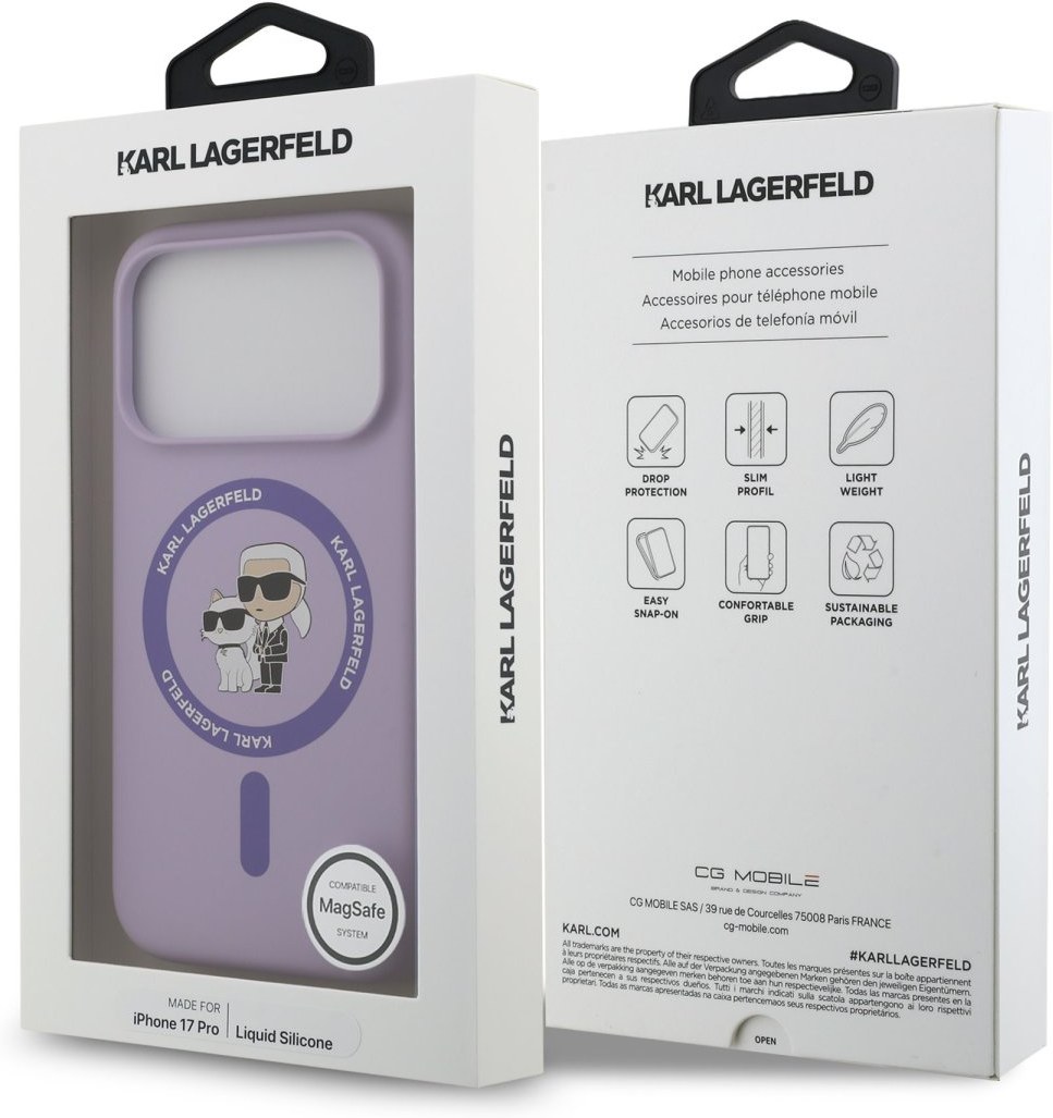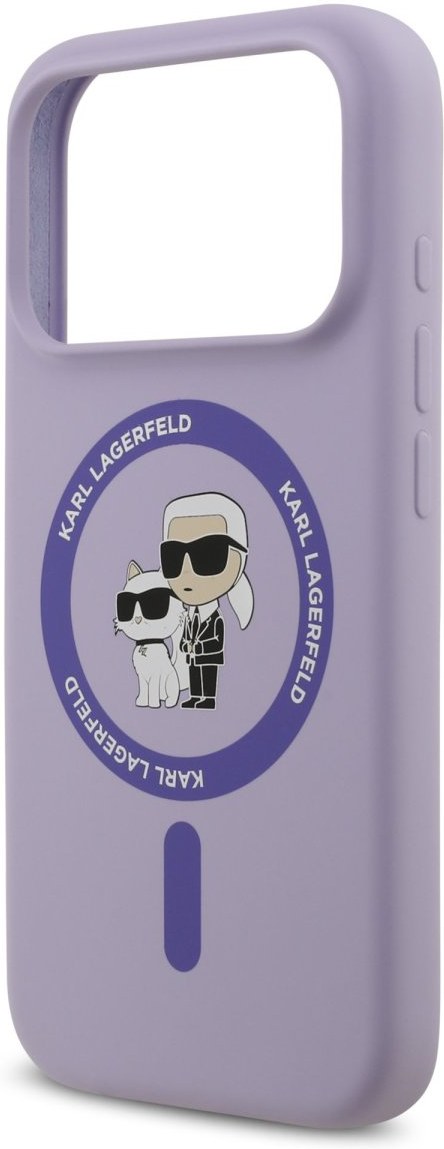 Karl Lagerfeld Liquid Silicone Karl and Choupette MagSafe kryt pre iPhone 17 Pro, fialový