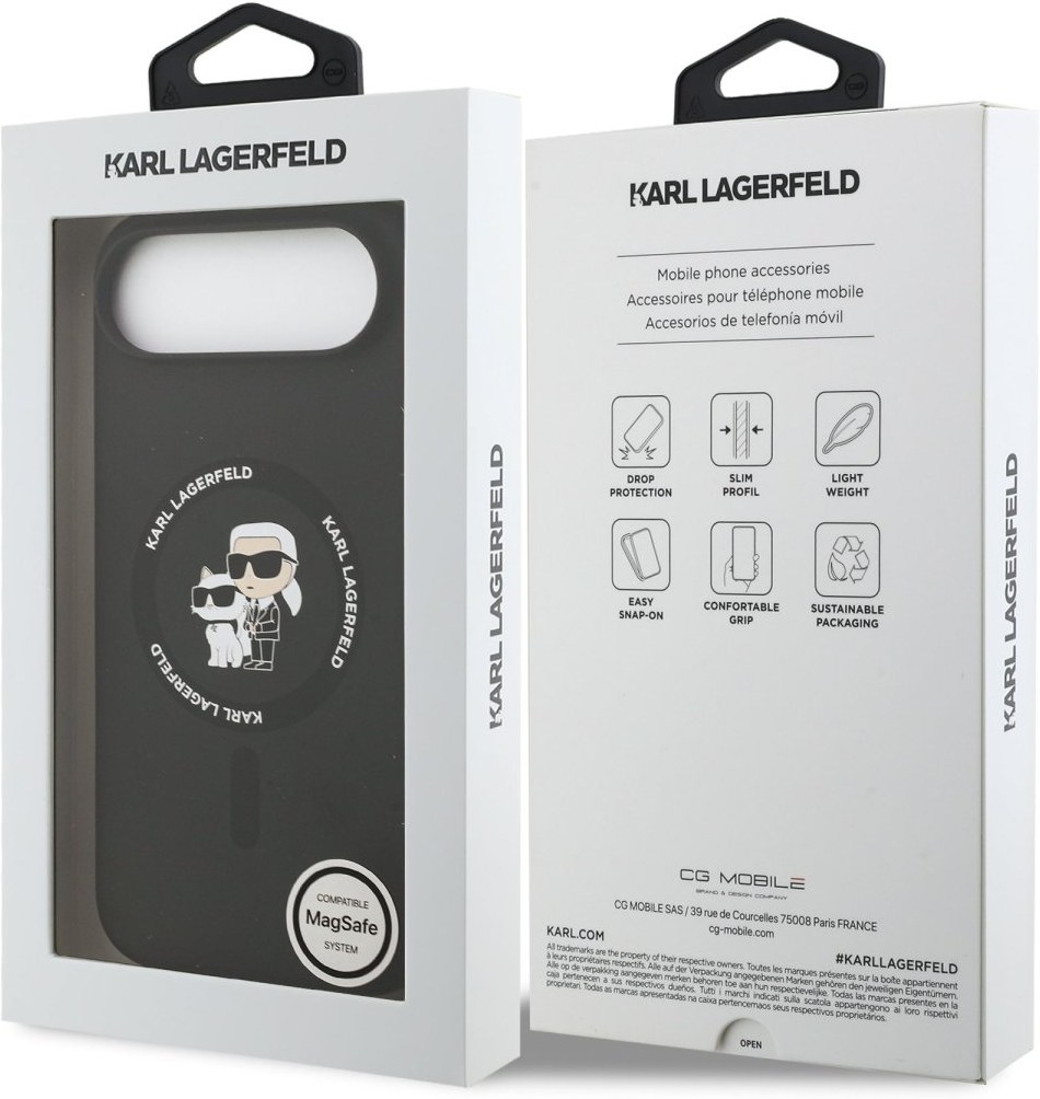 Karl Lagerfeld Liquid Silicone Karl and Choupette zadný kryt na telefón je skvelým doplnkom pre všetkých milovníkov štýlu a praktickosti. Kryt je vyrobený z ľahkého a odolného prémiového silikónu, ktorý nielen že dobre chráni váš telefón pred prachom a poškriabaním, ale tiež sa pohodlne drží v ruke a nešmýka sa. Na vnútornej strane krytu je výstelka z jemného mikrovlákna. Vďaka presnému tvaru perfektne sedí na telefóne a umožňuje ľahký prístup ku všetkým tlačidlám a konektorom. Tento kryt podporuje technológiu MagSafe, čo znamená, že je kompatibilný s bezdrôtovým nabíjaním a ďalšími MagSafe doplnkami. Dizajn krytu nesie ikonické vyobrazenie Karla Lagerfelda a jeho mačky Choupette, čo z neho robí nielen praktický, ale aj štýlový doplnok, ktorý skvele doplní váš outfit. Pokiaľ hľadáte kryt, ktorý kombinuje eleganciu a funkčnosť, je tento kúsok od Karla Lagerfelda tou pravou voľbou pre vás.Kľúčové vlastnosti