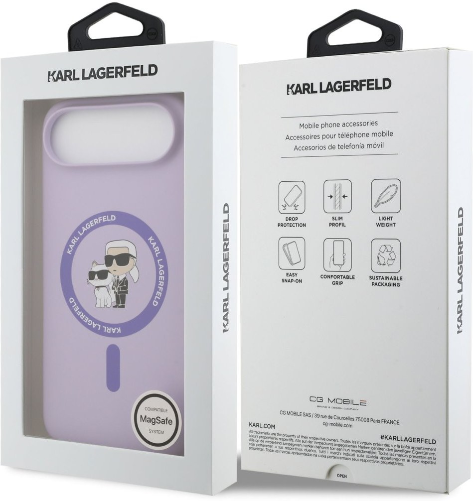 Karl Lagerfeld Liquid Silicone Karl and Choupette zadný kryt na telefón je skvelým doplnkom pre všetkých milovníkov štýlu a praktickosti. Kryt je vyrobený z ľahkého a odolného prémiového silikónu, ktorý nielen že dobre chráni váš telefón pred prachom a poškriabaním, ale tiež sa pohodlne drží v ruke a nešmýka sa. Na vnútornej strane krytu je výstelka z jemného mikrovlákna. Vďaka presnému tvaru perfektne sedí na telefóne a umožňuje ľahký prístup ku všetkým tlačidlám a konektorom. Tento kryt podporuje technológiu MagSafe, čo znamená, že je kompatibilný s bezdrôtovým nabíjaním a ďalšími MagSafe doplnkami. Dizajn krytu nesie ikonické vyobrazenie Karla Lagerfelda a jeho mačky Choupette, čo z neho robí nielen praktický, ale aj štýlový doplnok, ktorý skvele doplní váš outfit. Pokiaľ hľadáte kryt, ktorý kombinuje eleganciu a funkčnosť, je tento kúsok od Karla Lagerfelda tou pravou voľbou pre vás.Kľúčové vlastnosti
