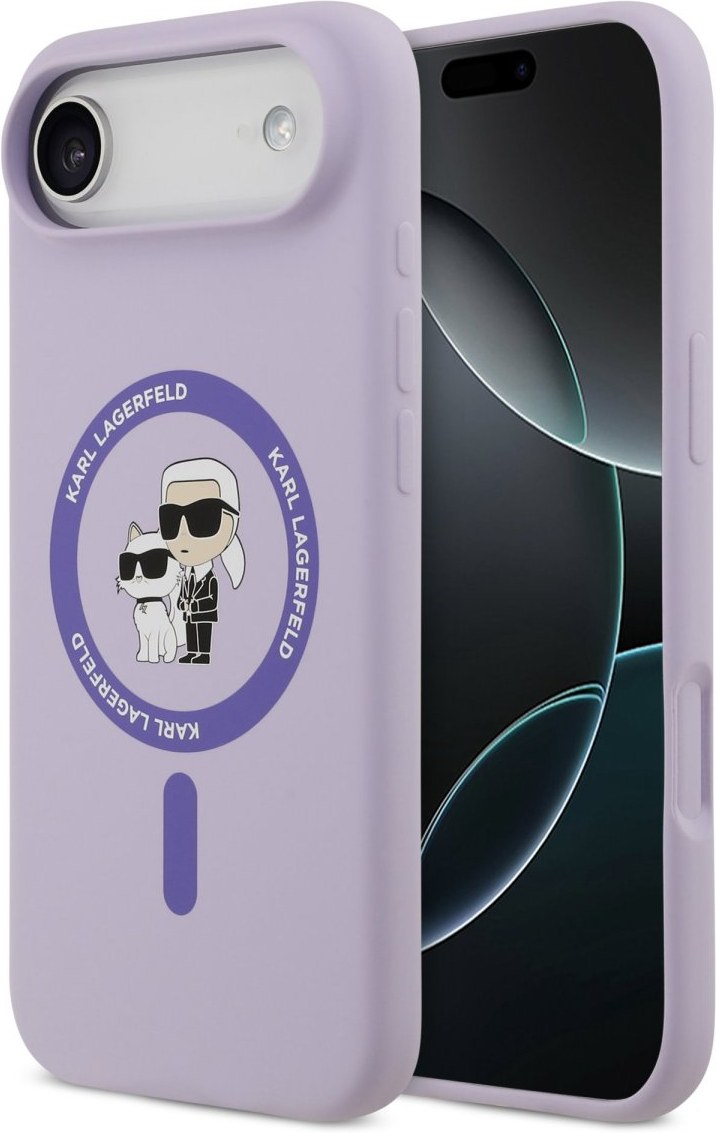 Karl Lagerfeld Liquid Silicone Karl and Choupette MagSafe kryt pre iPhone Air, fialový
