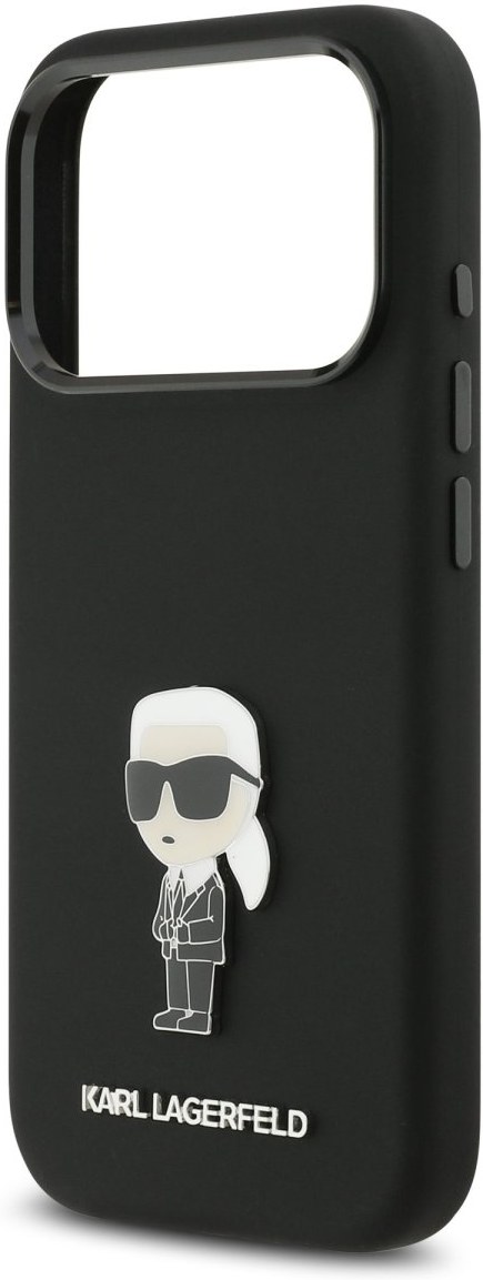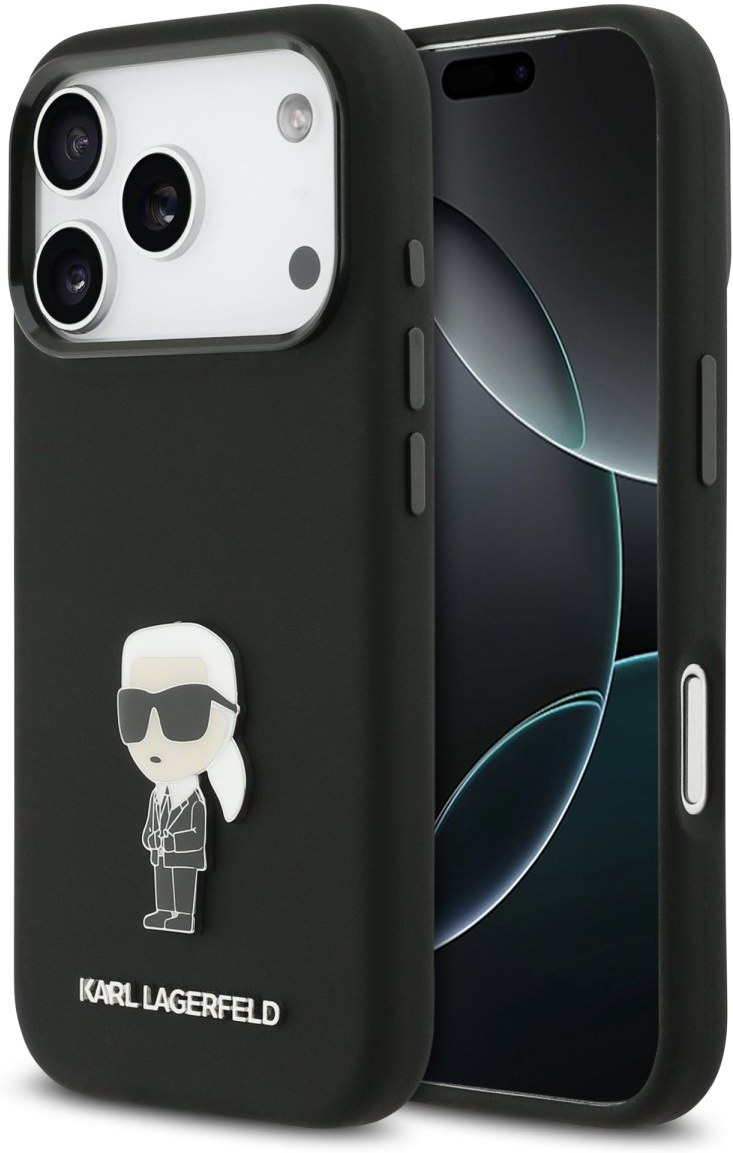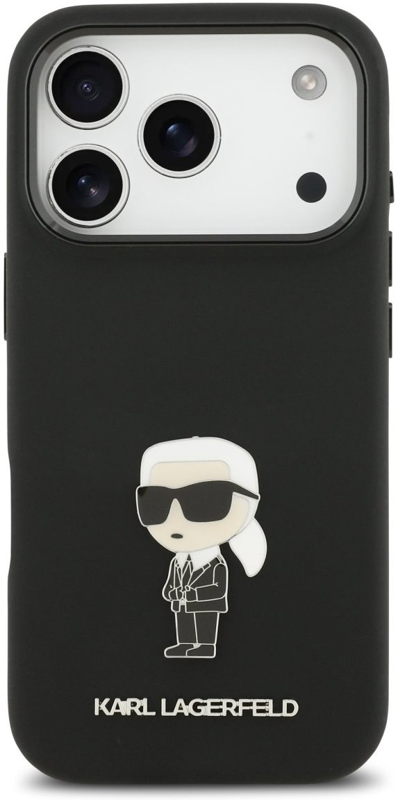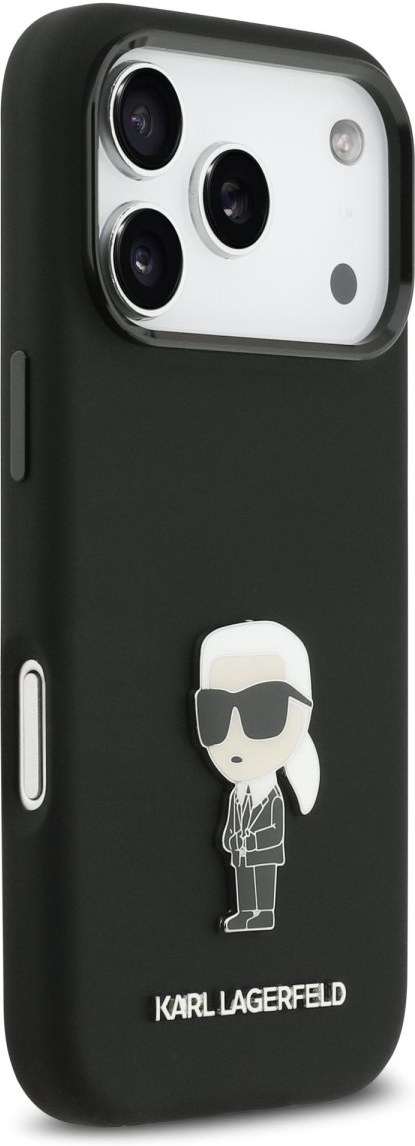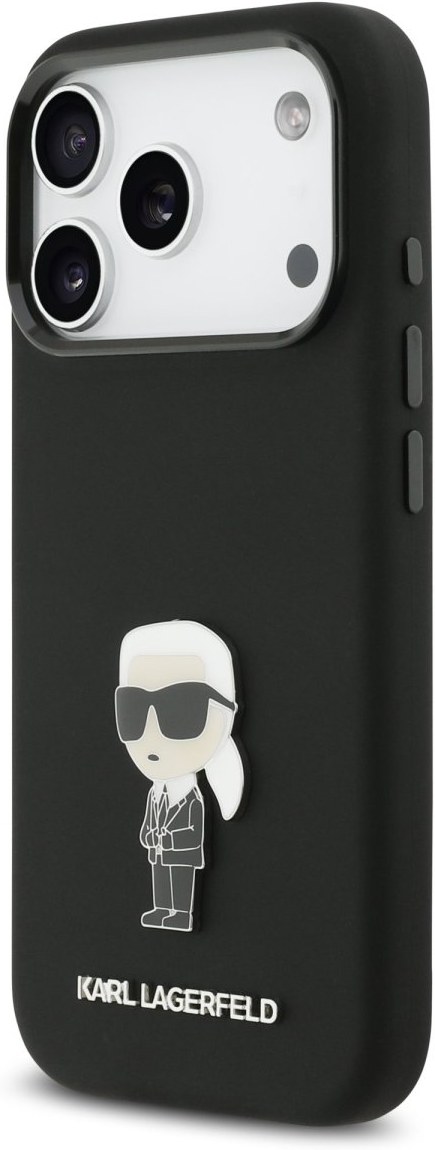 Karl Lagerfeld Liquid Silicone Metal Ikonik kryt pre iPhone 17 Pro, čierny