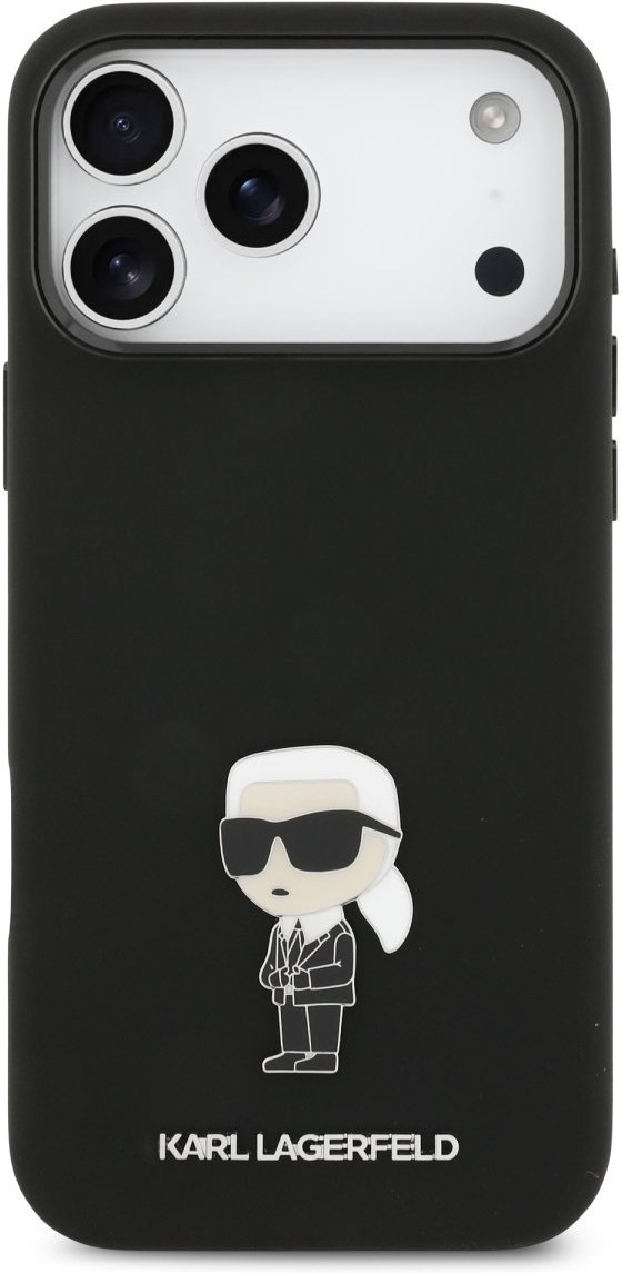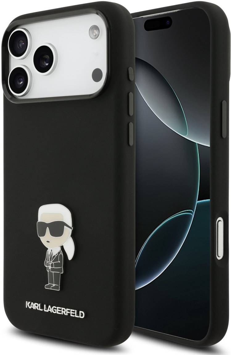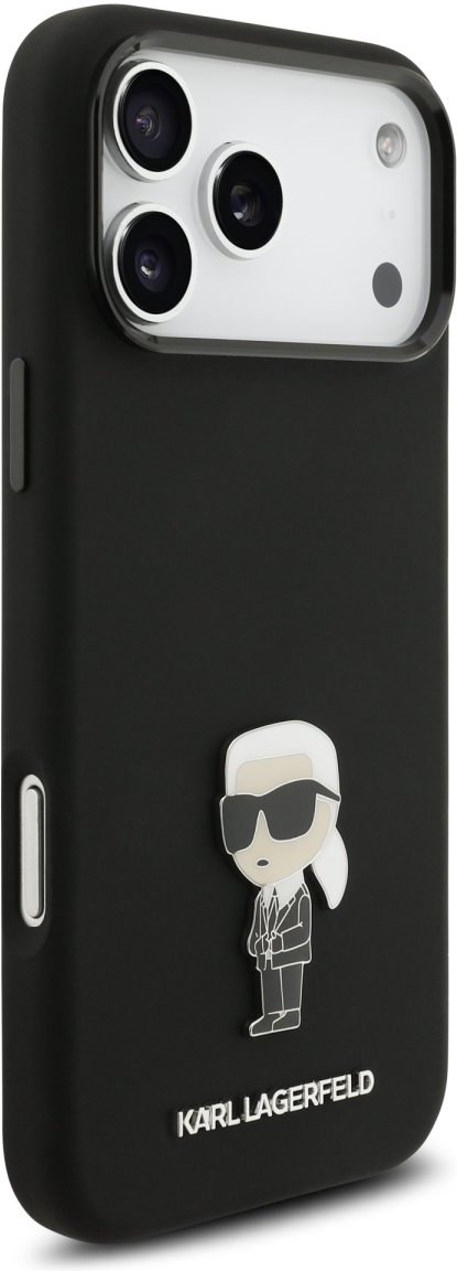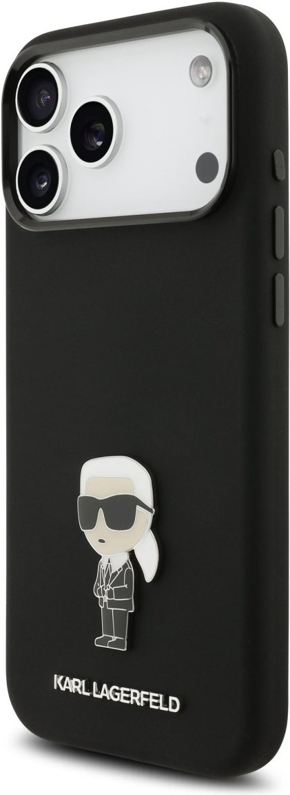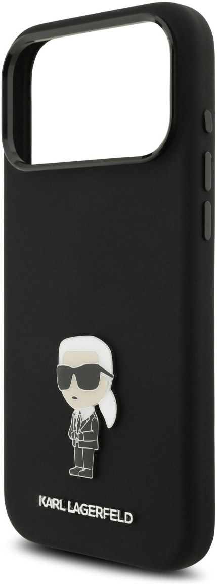 Karl Lagerfeld Liquid Silicone Metal Ikonik kryt pre iPhone 17 Pro Max, čierny
