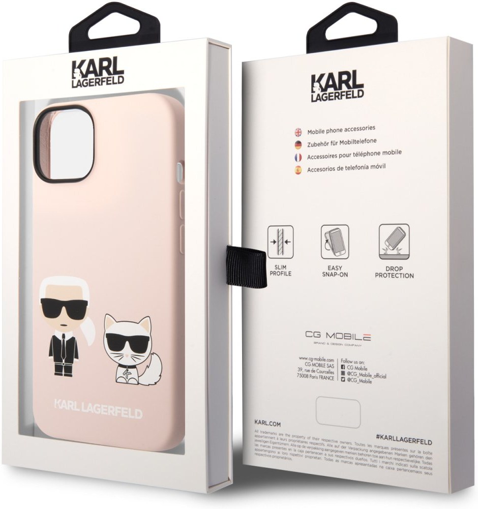 Karl Lagerfeld MagSafe kryt Liquid Silicone Karl a Choupette pre iPhone 14 Plus, ružový