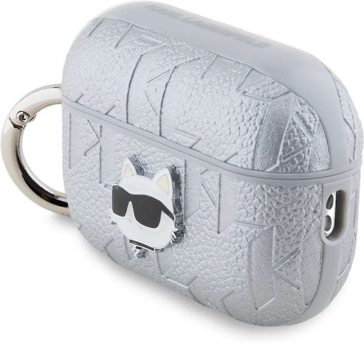 Karl Lagerfeld PU Embossed Choupette Head puzdro pre AirPods Pro 2, strieborné