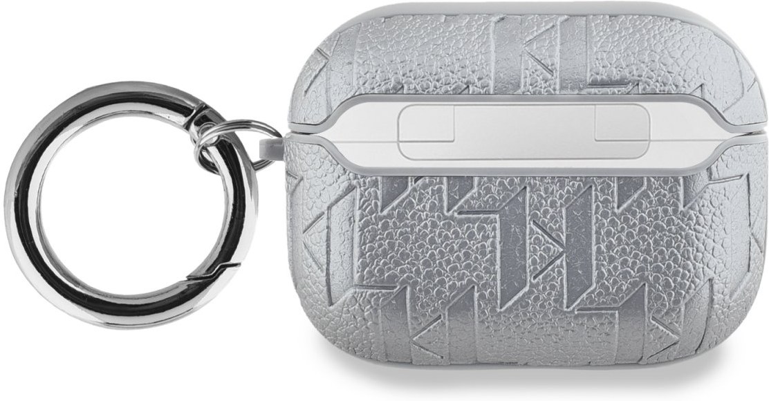 Karl Lagerfeld PU Embossed Karl Head puzdro pre AirPods Pro, strieborné