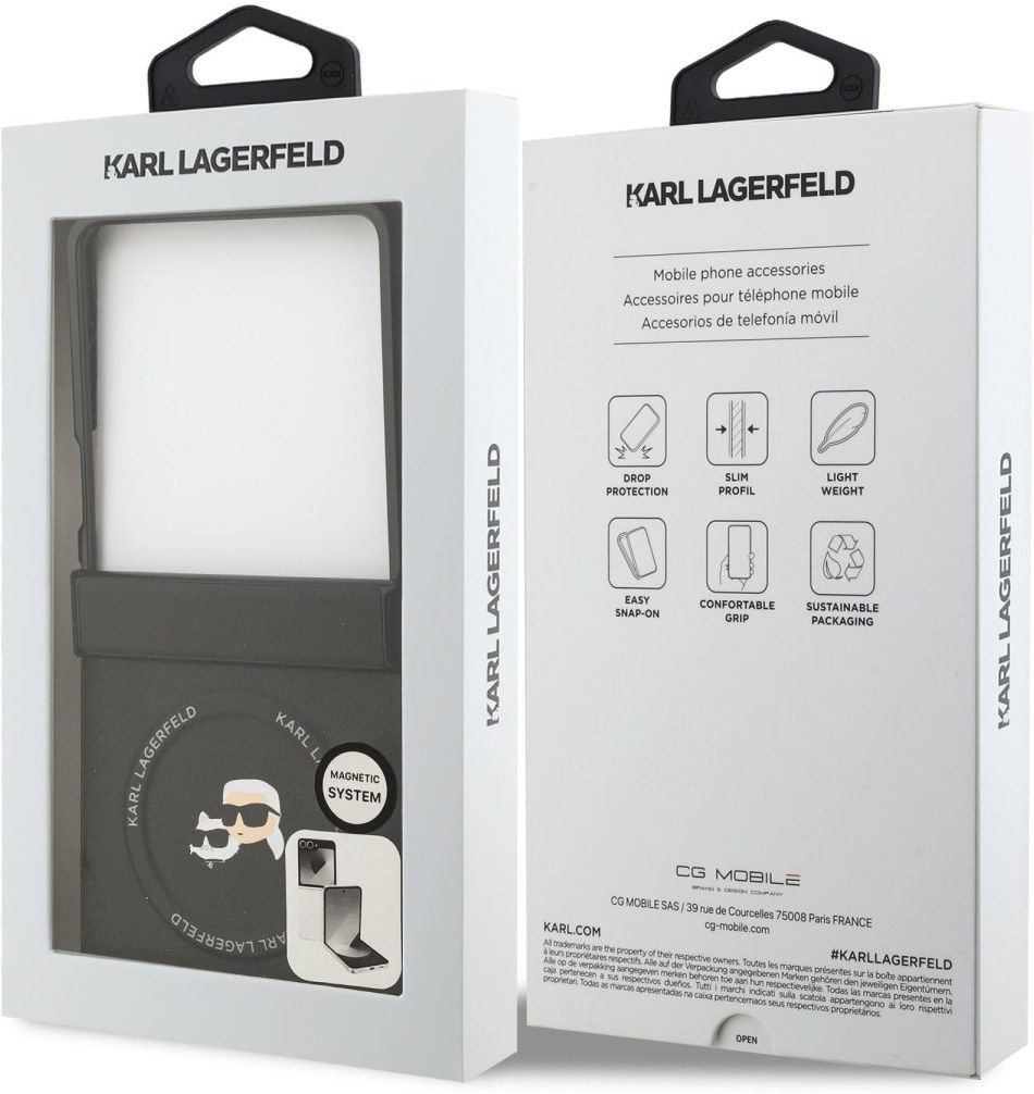 Karl Lagerfeld PU Karl and Choupette Heads Magnetic kryt pre Samsung Galaxy Z Flip 7, čierny