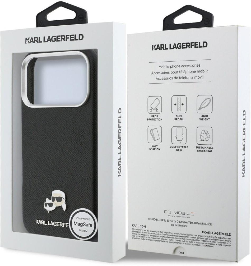 puzdro pre telefón Apple, zadný kryt, vreckové, prevedenie Karl Lagerfeld, podpora MagSafe, farba čiernaZobraziť viac