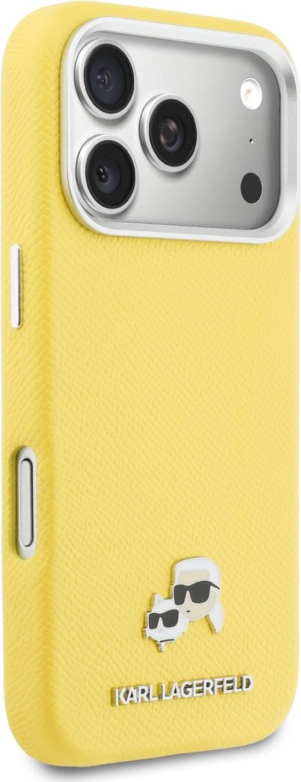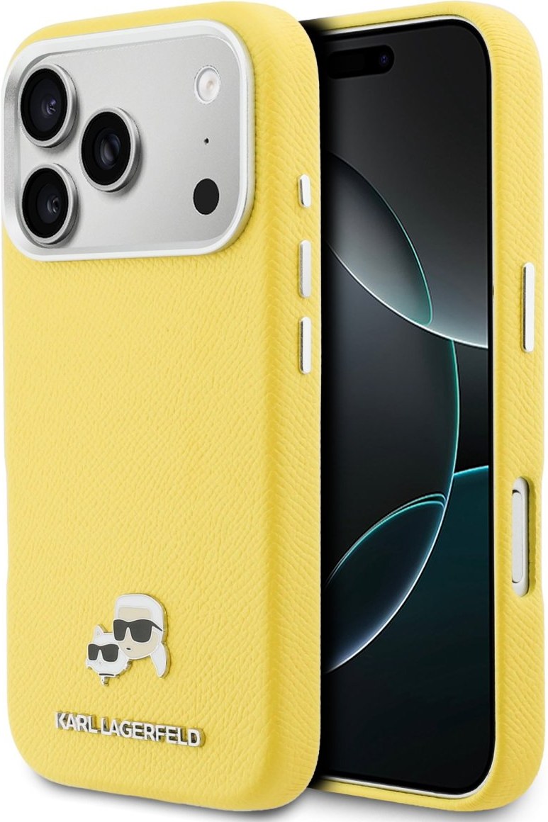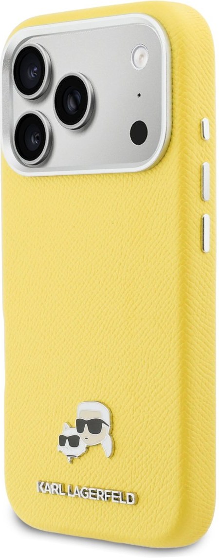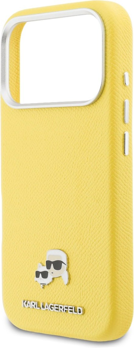 Karl Lagerfeld PU Karl and Choupette Heads Pins MagSafe kryt pre iPhone 17 Pro Max, žltý