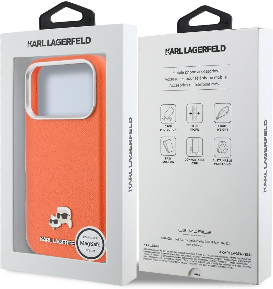 puzdro pre telefón Apple, zadný kryt, vreckové, prevedenie Karl Lagerfeld, podpora MagSafe, farba oranžováZobraziť viac