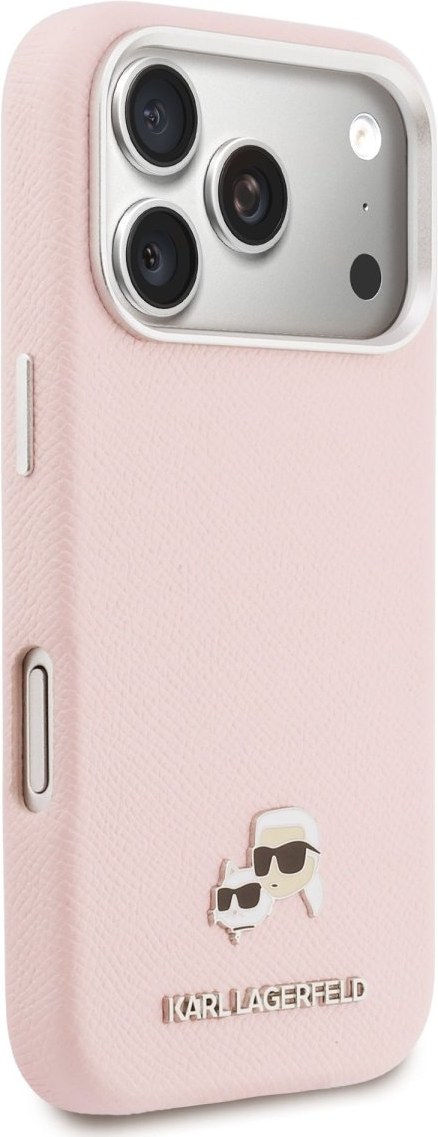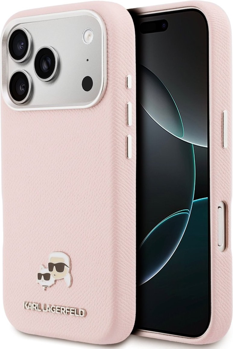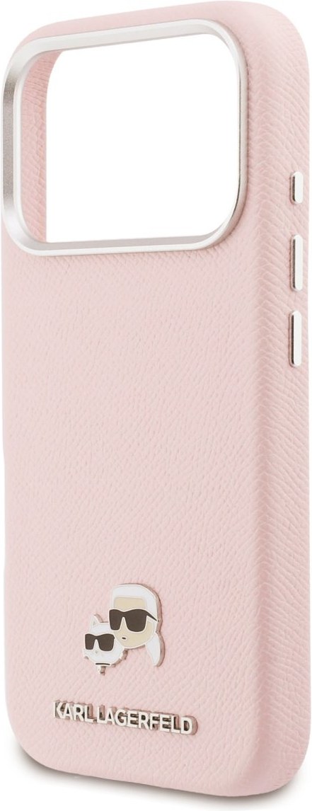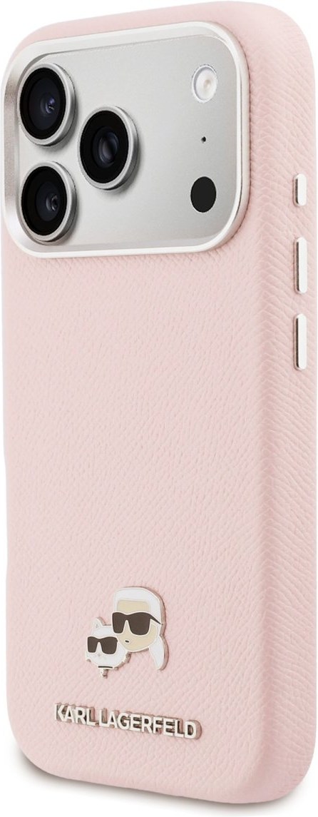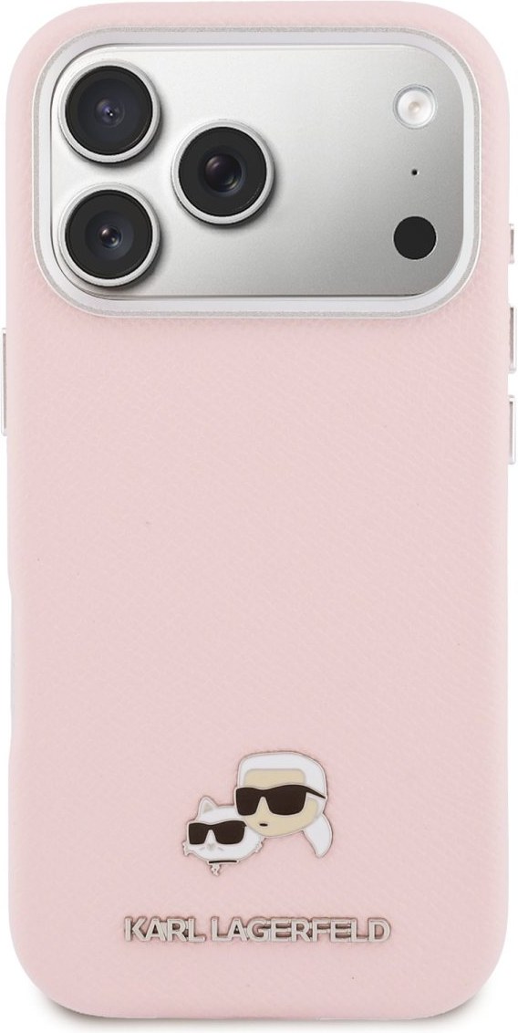 Karl Lagerfeld PU Karl and Choupette Heads Pins MagSafe kryt pre iPhone 17 Pro, ružový