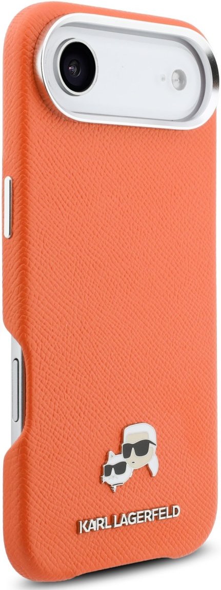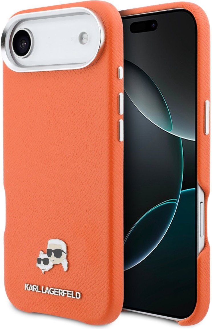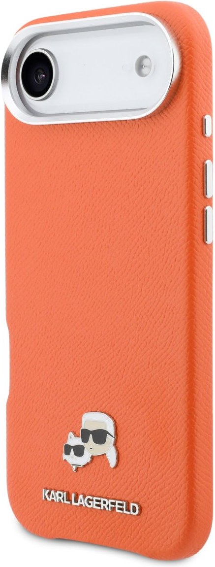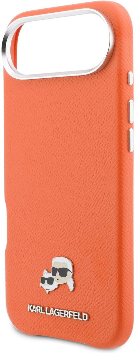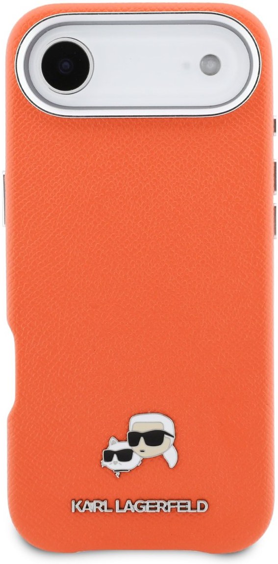 Karl Lagerfeld PU Karl and Choupette Heads Pins MagSafe kryt pre iPhone Air, oranžový
