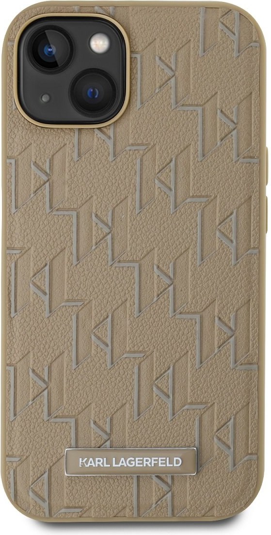 Karl Lagerfeld PU Leather Monogram Metal Logo Magsafe kryt pre iPhone 14, béžový