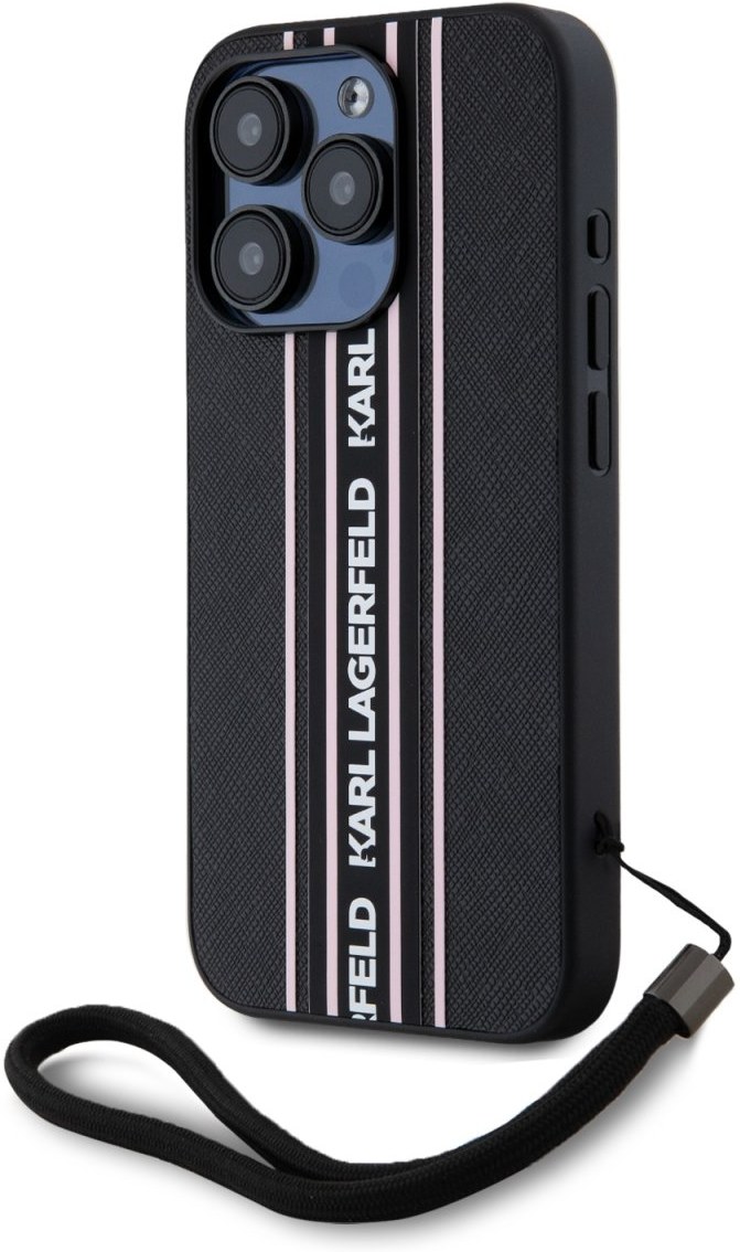 Karl Lagerfeld PU Saffiano Athleisure Stripe and Strap kryt pre iPhone 15 Pro Max