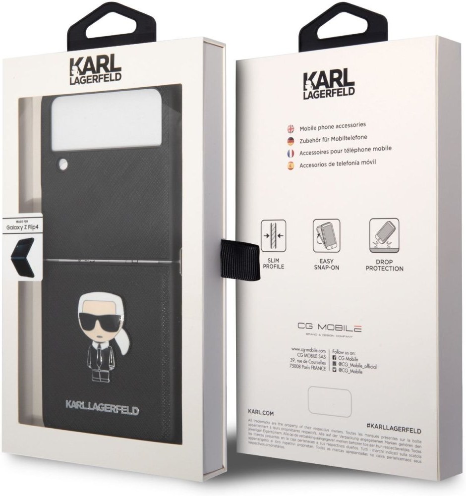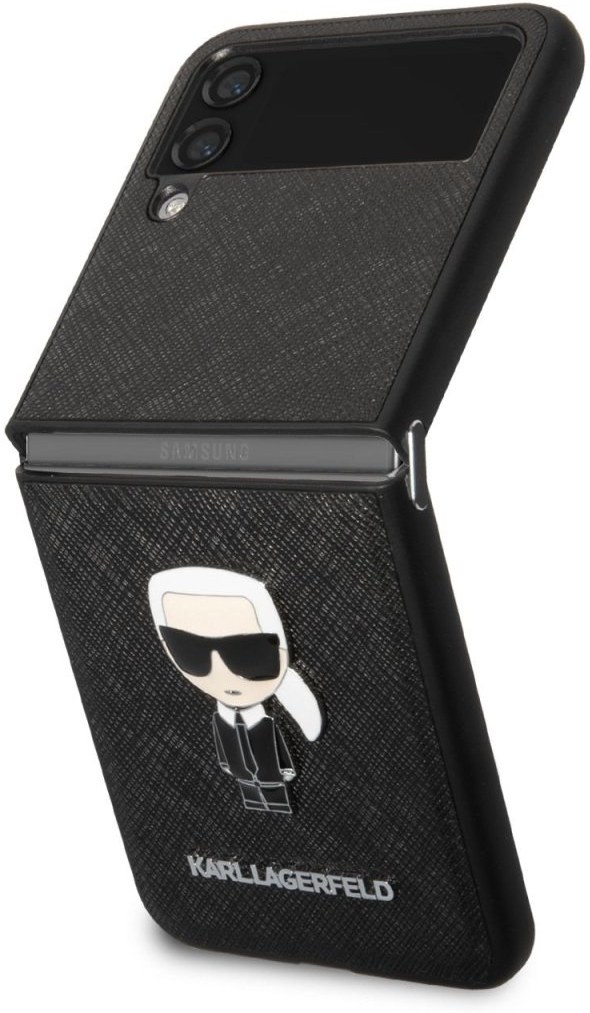 Karl Lagerfeld PU Saffiano Ikonik kryt pre Samsung Galaxy Z Flip 4, čierny