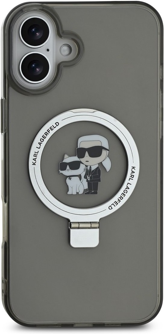 Karl Lagerfeld Ringstand Karl and Choupette MagSafe kryt pre iPhone 16 Plus, čierny