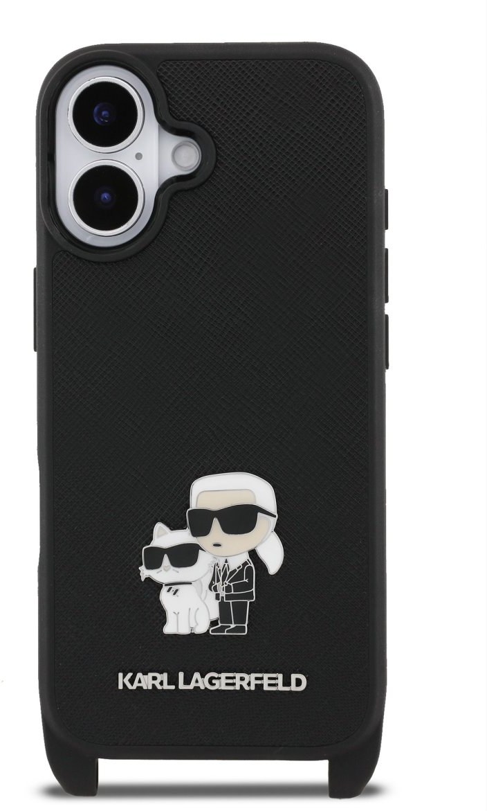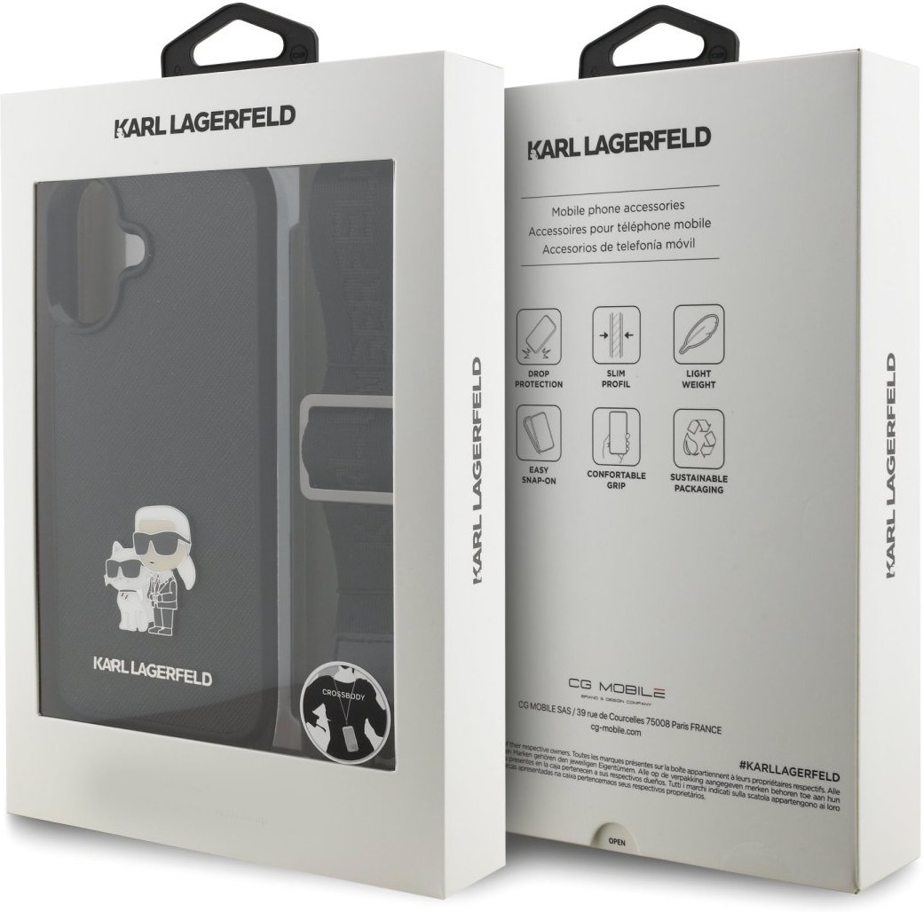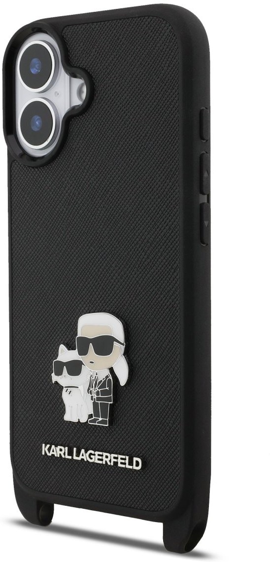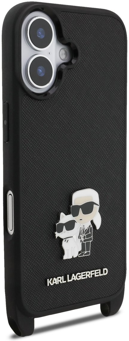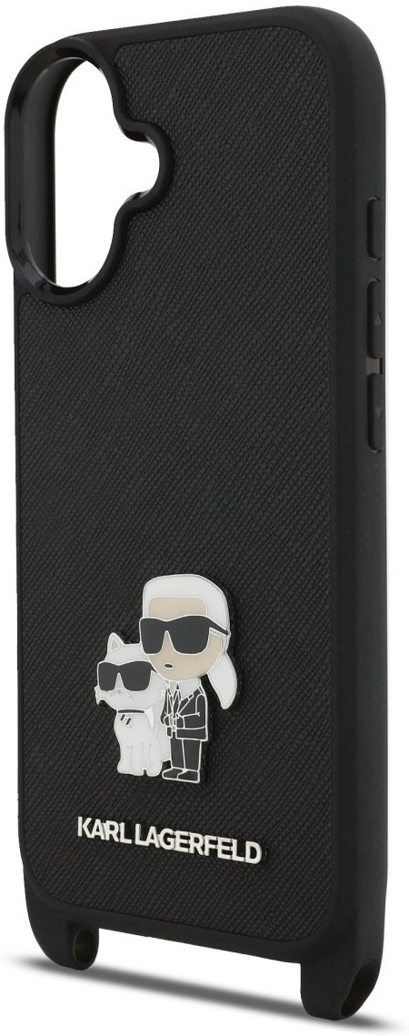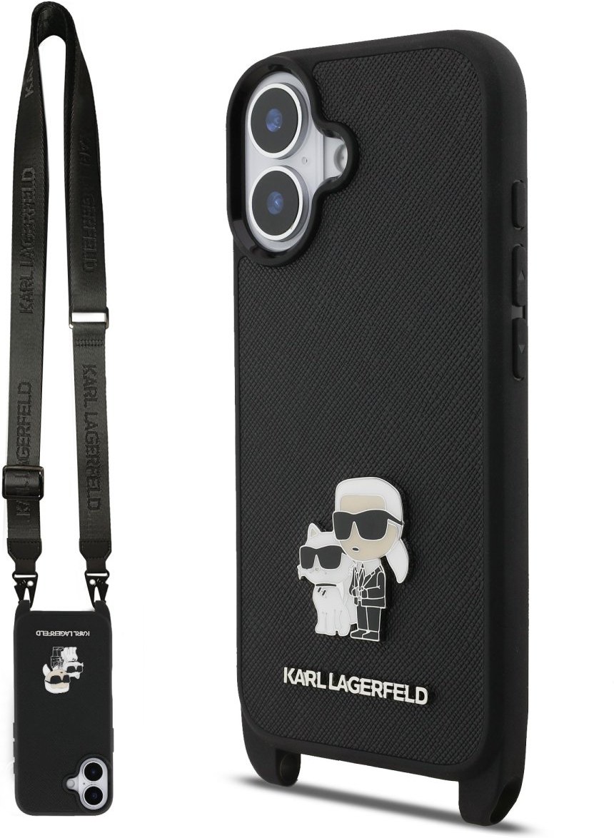 Karl Lagerfeld Saffiano Crossbody Popruh Metal Karl and Choupette kryt pre iPhone 17, čierny