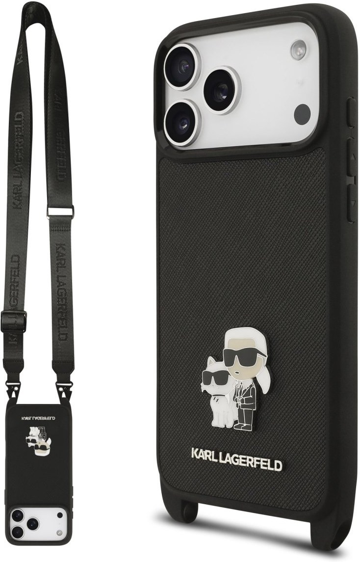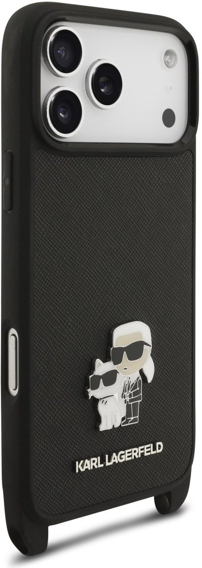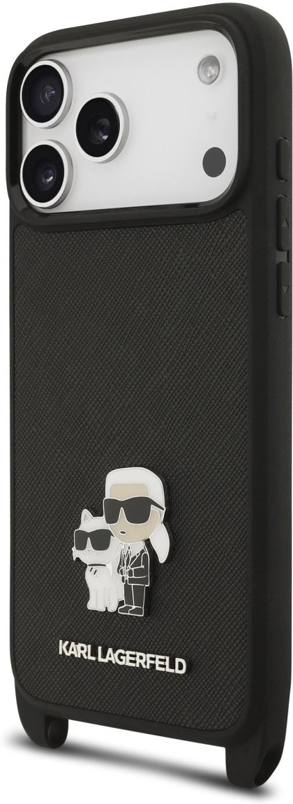 Karl Lagerfeld Saffiano Crossbody popruh Metal Karl and Choupette kryt pre iPhone 17 Pro Max, čierny