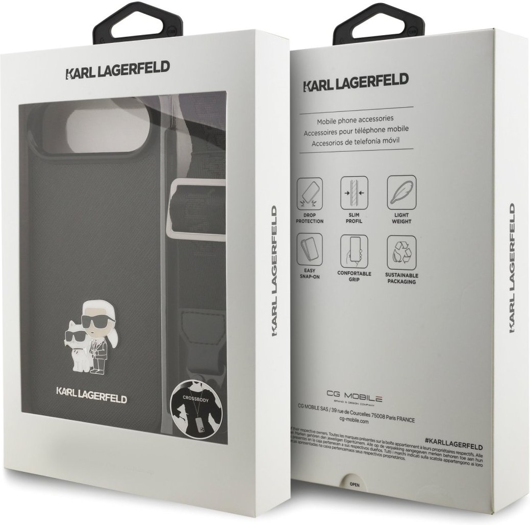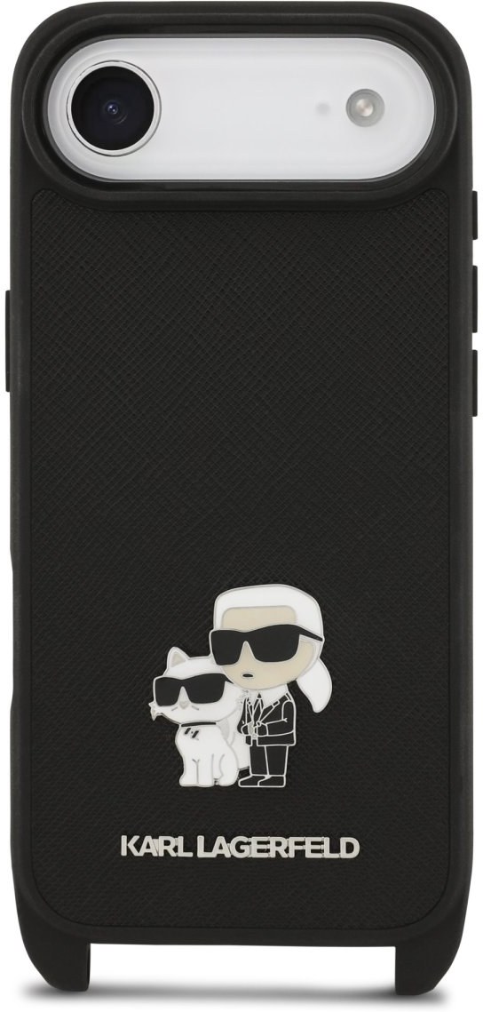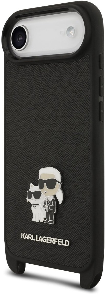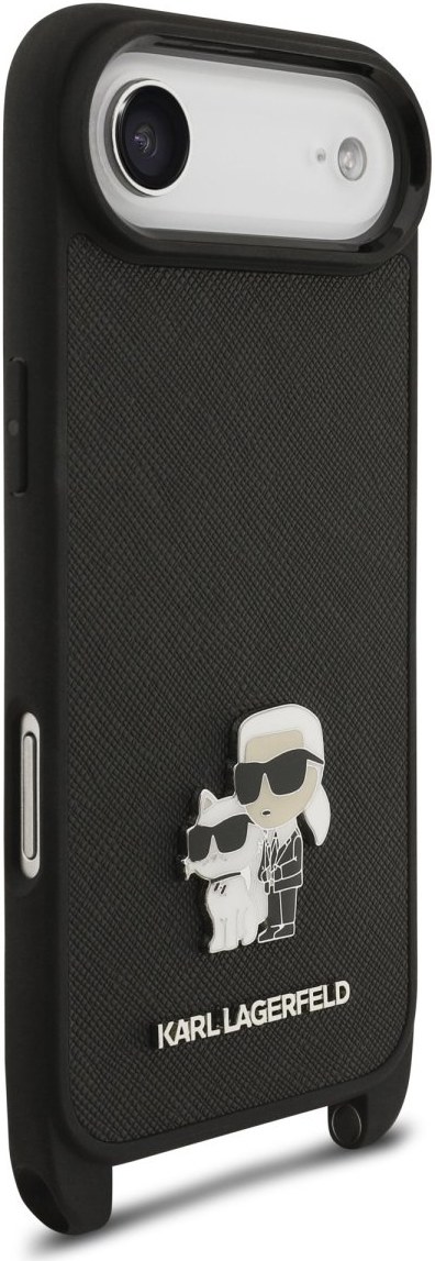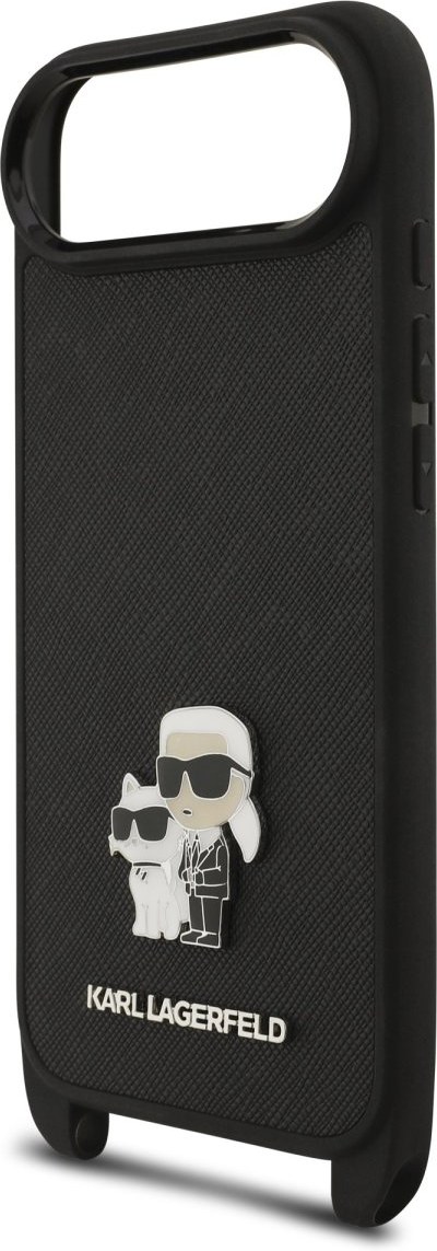 Karl Lagerfeld Saffiano Crossbody popruh Metal Karl and Choupette kryt pre iPhone Air, čierny