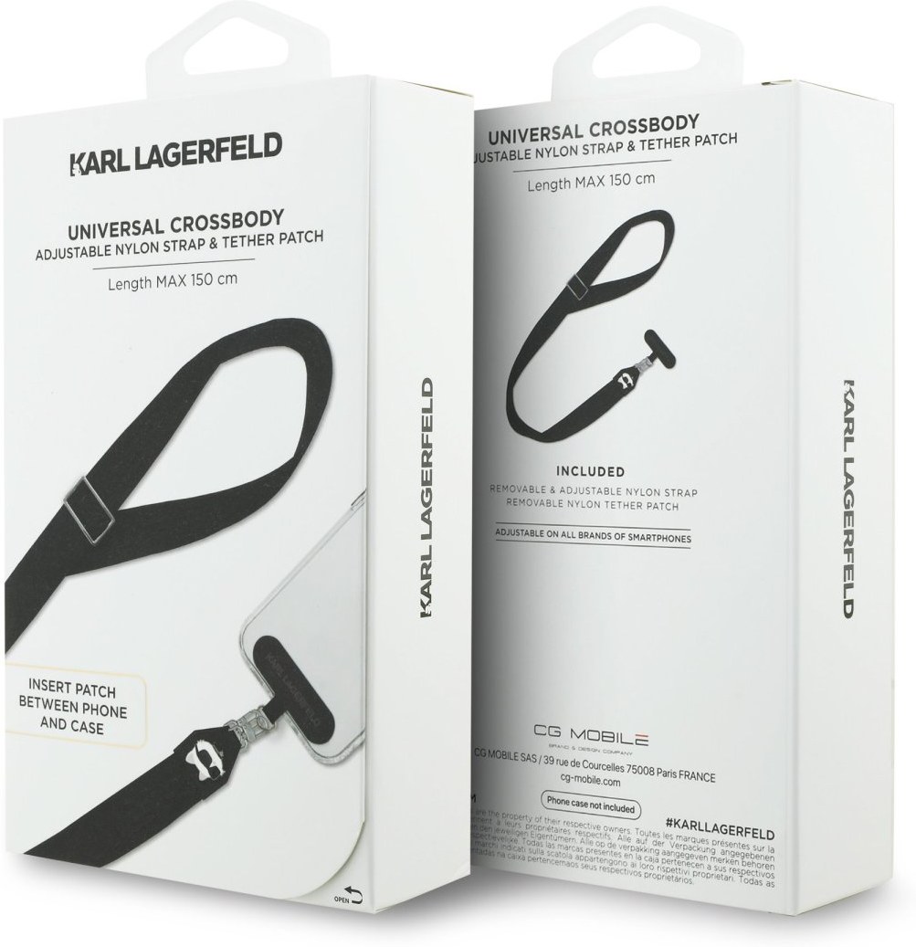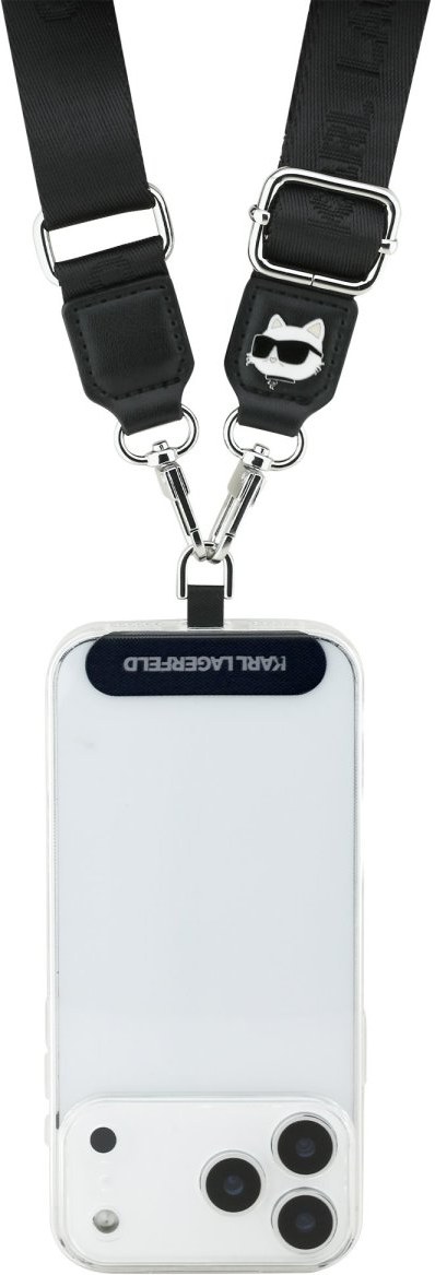 S univerzálnym crossbody popruhom Karl Lagerfeld Choupette Patch Black získate nielen štýlový doplnok pre váš telefón, ale aj praktické a módne riešenie, ako mať telefón vždy po ruke. Vďaka ikonickému dizajnu s opakovaným logom Karl Lagerfeld a motívom slávnej mačky Choupette nad karabínami je popruh nielen funkčný, ale aj výrazne módny. Popruh je vyrobený z odolného nylonu, ktorý zaisťuje dlhú životnosť a komfort pri nosení. Vďaka praktickým karabínam je možné popruh kedykoľvek ľahko odopnúť bez toho, aby ste museli dávať dole zadný kryt telefónu, čo zaručuje maximálne pohodlie a flexibilitu pri každodennom používaní. Univerzálny patch, ktorý sa vkladá medzi telefón a jeho puzdro, umožňuje bezpečné a stabilné uchytenie pre všetky značky smartfónov. Crossbody popruh má nastaviteľnú dĺžku až 150 cm, takže ho môžete nosiť cez rameno alebo okolo krku podľa potreby.Kľúčové vlastnosti