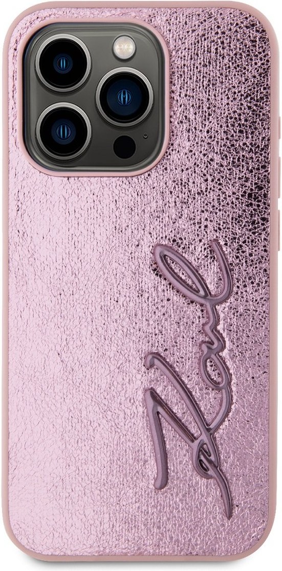 Karl Lagerfeld Wrinkled PU Signature Logo kryt pre iPhone 15 Pro, ružový