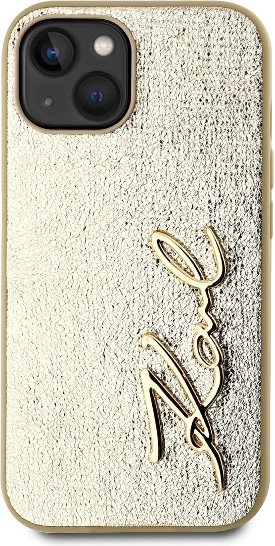 Karl Lagerfeld Wrinkled PU Signature Logo kryt pre iPhone 15, zlatý