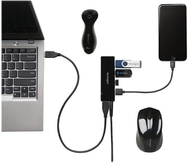Popis výrobku Kensington UH4000C - rozbočovač - 4 portyTyp zariadenia Rozbočovač - 4 porty