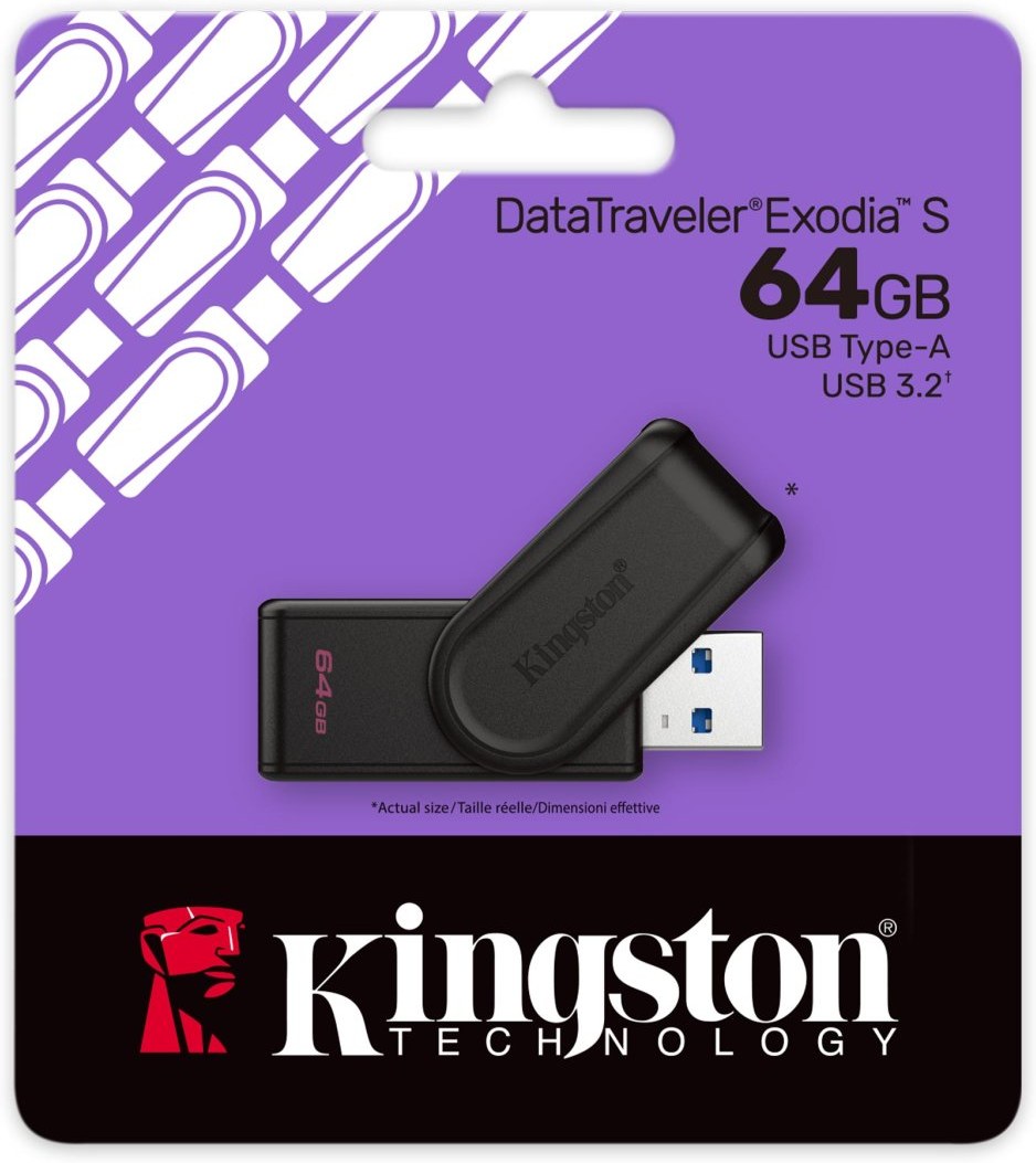 Kingston DataTraveler® Exodia™ S je základné úložné riešenie kompatibilné s USB 3.2 Gen 1 pre notebooky, stolné počítače a iné digitálne zariadenia. DT Exodia S umožňuje jednoduché prenosy a pohodlné ukladanie dokumentov, videí, hudby a ďalších.Dizajn otočného uzáveru chráni USB konektor