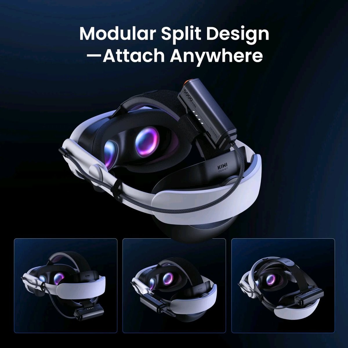 Až 4,5 – 5 hodín celkovej doby prehrávania — Napájané dvoma vymeniteľnými batériami s kapacitou 5000 mAh v kombinácii so vstavanou batériou headsetu.Univerzálna kompatibilita s VR – Funguje ako spoľahlivá záložná batéria pre všetky hlavné VR headsety a podporuje širokú škálu zariadení s USB-C.